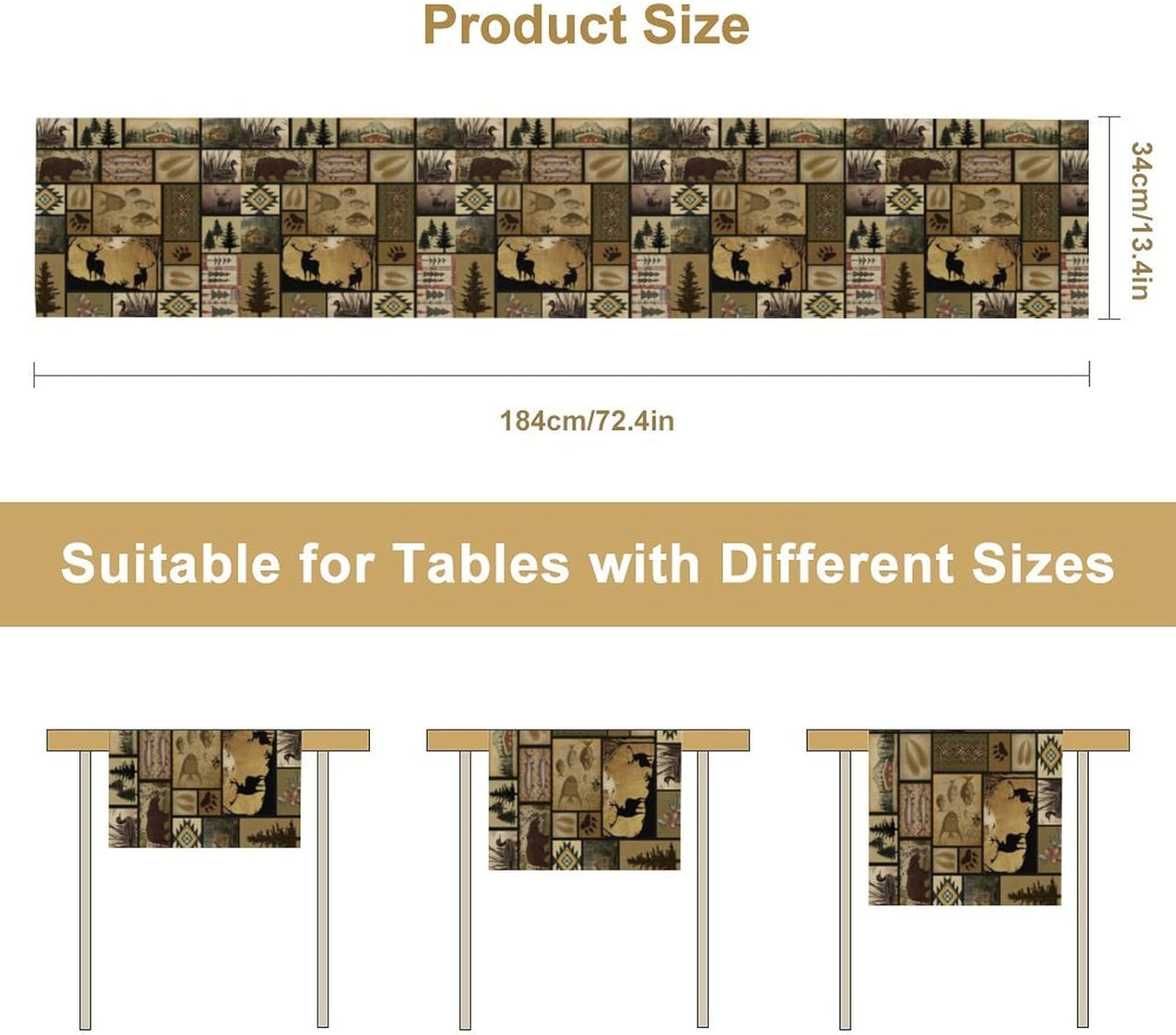 Vintage Deer Bear Table Runner, Fish Retro Farmhouse Cabin Lake Country Lodge Table Runner for Home Dinner Kitchen Living Room, 13x60 Inch