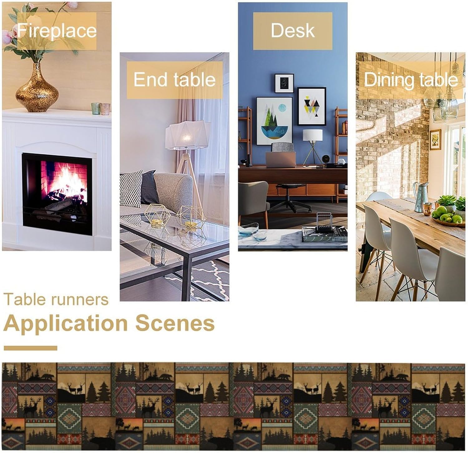 Rustic Cabin Bear Aztec Table Runner, Retro Brown Bear Rustic Theme Geometry Decoration for Home Dinner Party Living Room Bedroom Table Runner 13x120 Inch