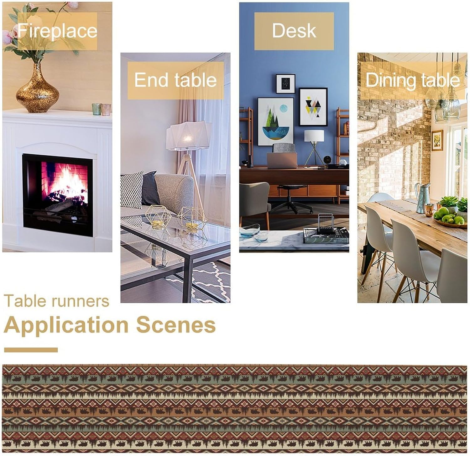 Retro Cabin Table Runner Rustic Bear Forest Farmhouse Lodge Jungle Table Runner for Dinner Party Living Room Kitchen Aztec Vintage 13x60 Inch
