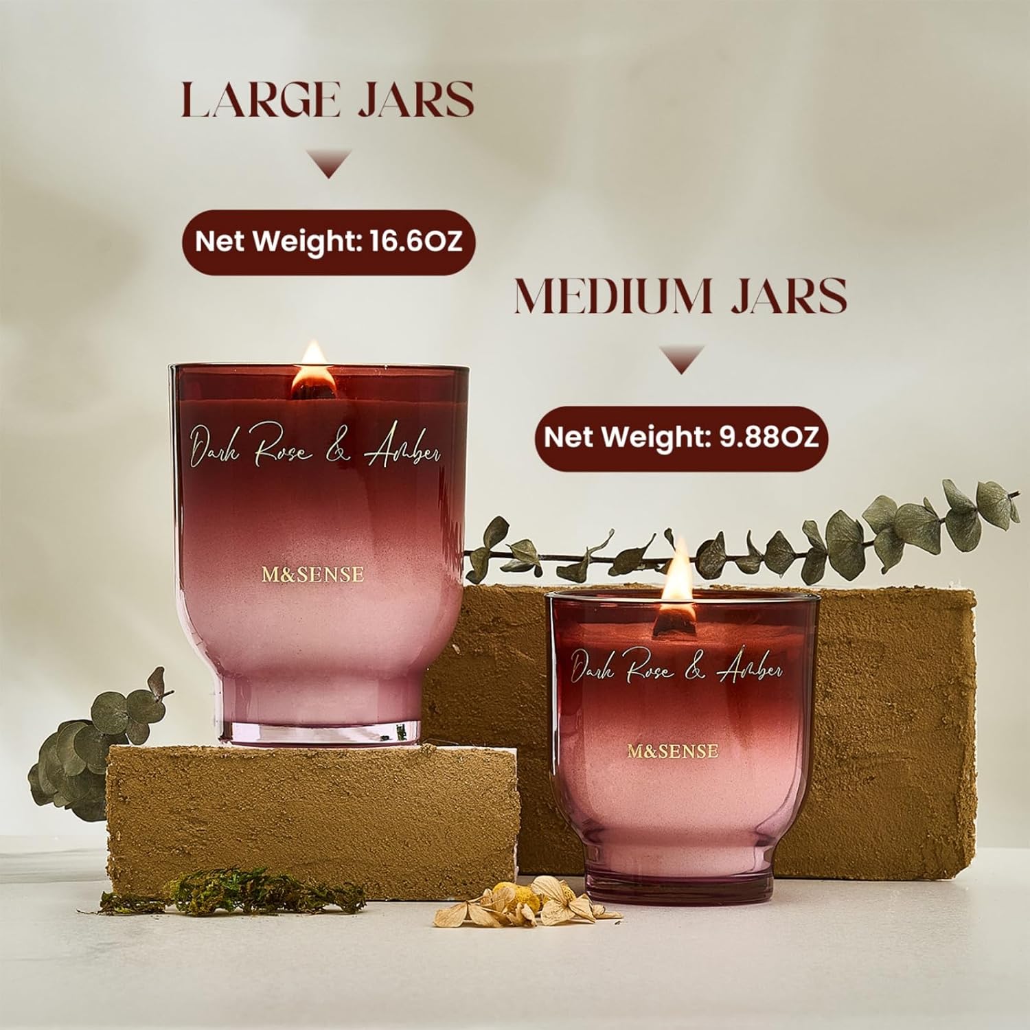 M&SENSE 9.88oz Natural Soy Wax Jar Candle with Wooden Wick | Dark Rose Amber Scent | 55-Hour Burn & Long-Lasting Burn | Housewarming Gift for Men and Women