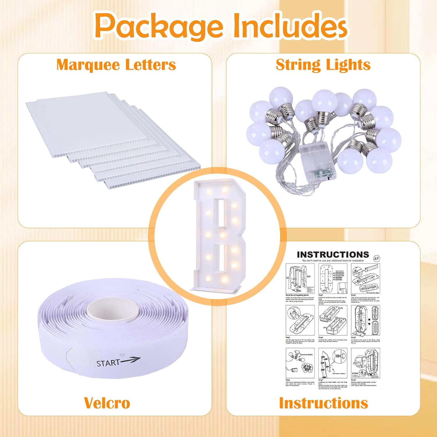 - Large Marquee for Letters 4 Feet Tall: Why settle for ordinary? Get premium corrugated board, stunning large light up letters that will elevate your party decor and leave a lasting impression. 4ft marquee for letters add style and fun to your party