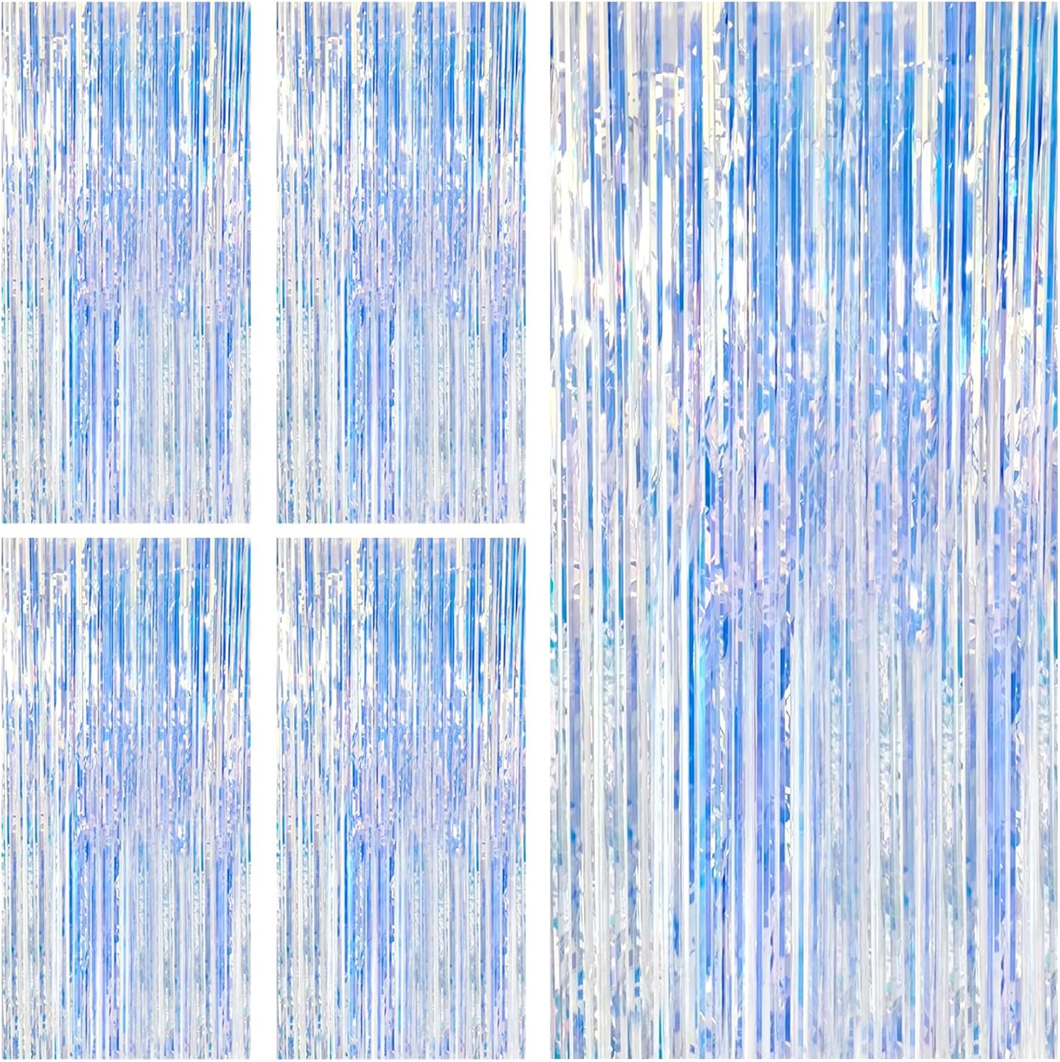 - Party Streamers Backdrop: 5Packs/Set, each pack curtains size is 3.28 ft x 6.56 ft, enough length foil fringe backdrops are perfect for the door or wall to create an impressive decoration for parties, events, and photo booths. Create your own party decorations now!