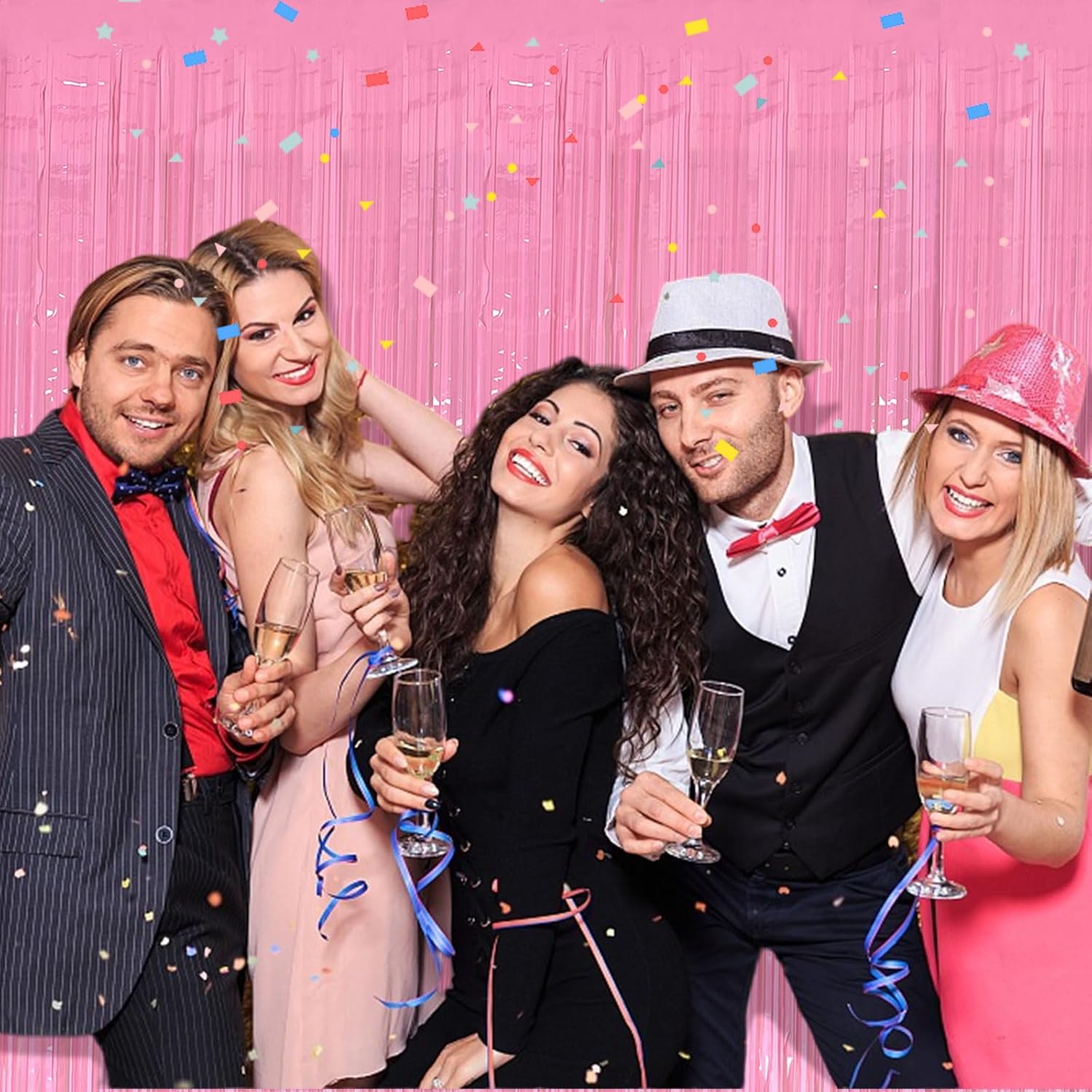 2 Pack Party Backdrop Decorations Pink Tinsel Curtain Party Backdrop Foil Fringe Birthday Decorations Photo Booth Streamer Pink Theme Bachelorette Graduation Decor