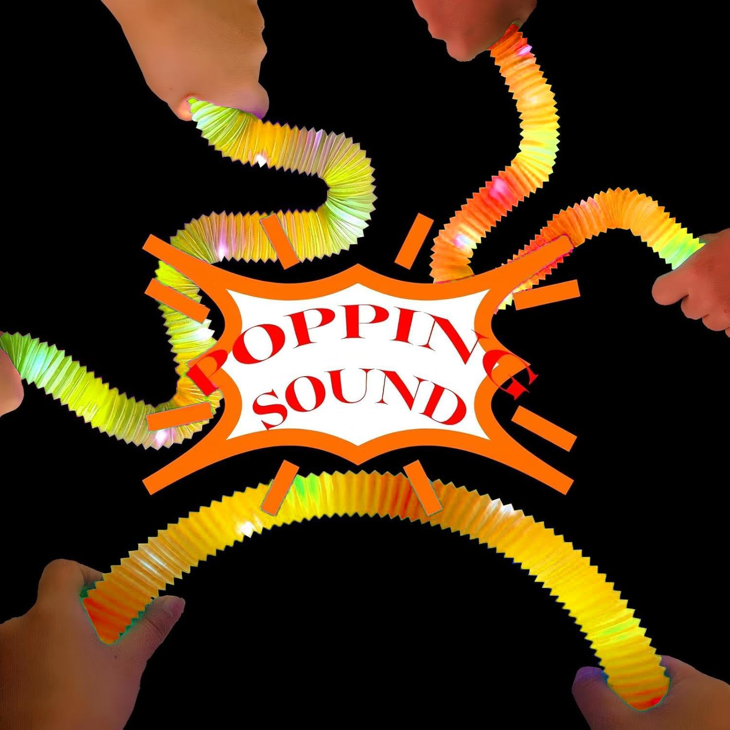 - When you stretch or twist the led pop tubes, it will make a satisfying "pop" sound and special touch, which can help to calm down and relieve anxiety by diverting attention to popping sounds. Nice choice as a playing kids party favors for indoor and outdoor