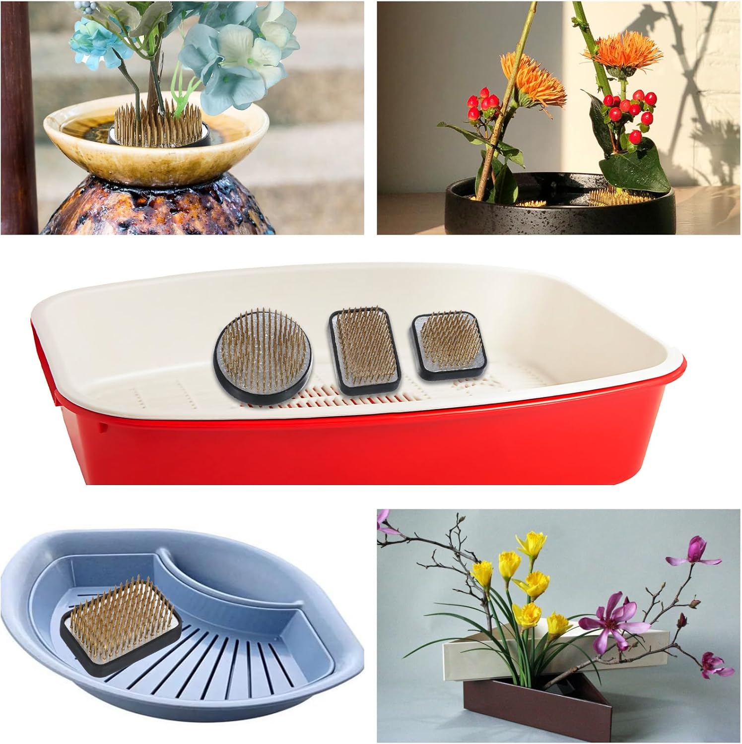 - ★Application: In a container, it can keep flowers or plants upright. The square flower frog is suitable for shallow containers, small-caliber vases, and can be used for Japanese ikebana courses, while rectangular and round flower frogs have larger sizes, suitable for open flower bowls, and can be used for moribana courses.