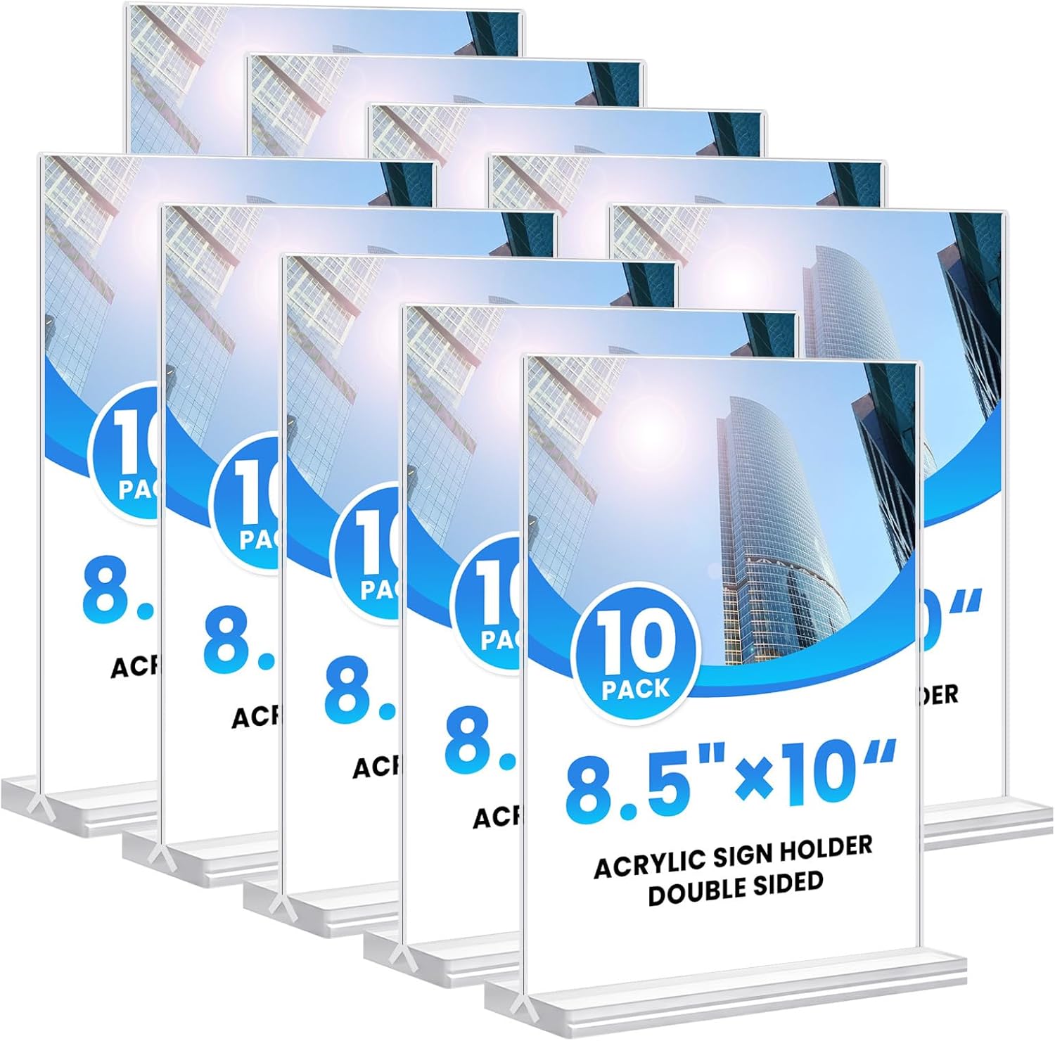 - 【Double Sided Sign Stand】This 10 Pack acrylic sign holder 8.5x11 is designed with a vertical double sided stand. Compared to the backward-tilted stand, the transparent menu holder adopts a vertical double-sided design, and both sides can display and protect pictures or posters, menus, etc., and are clearly visible.