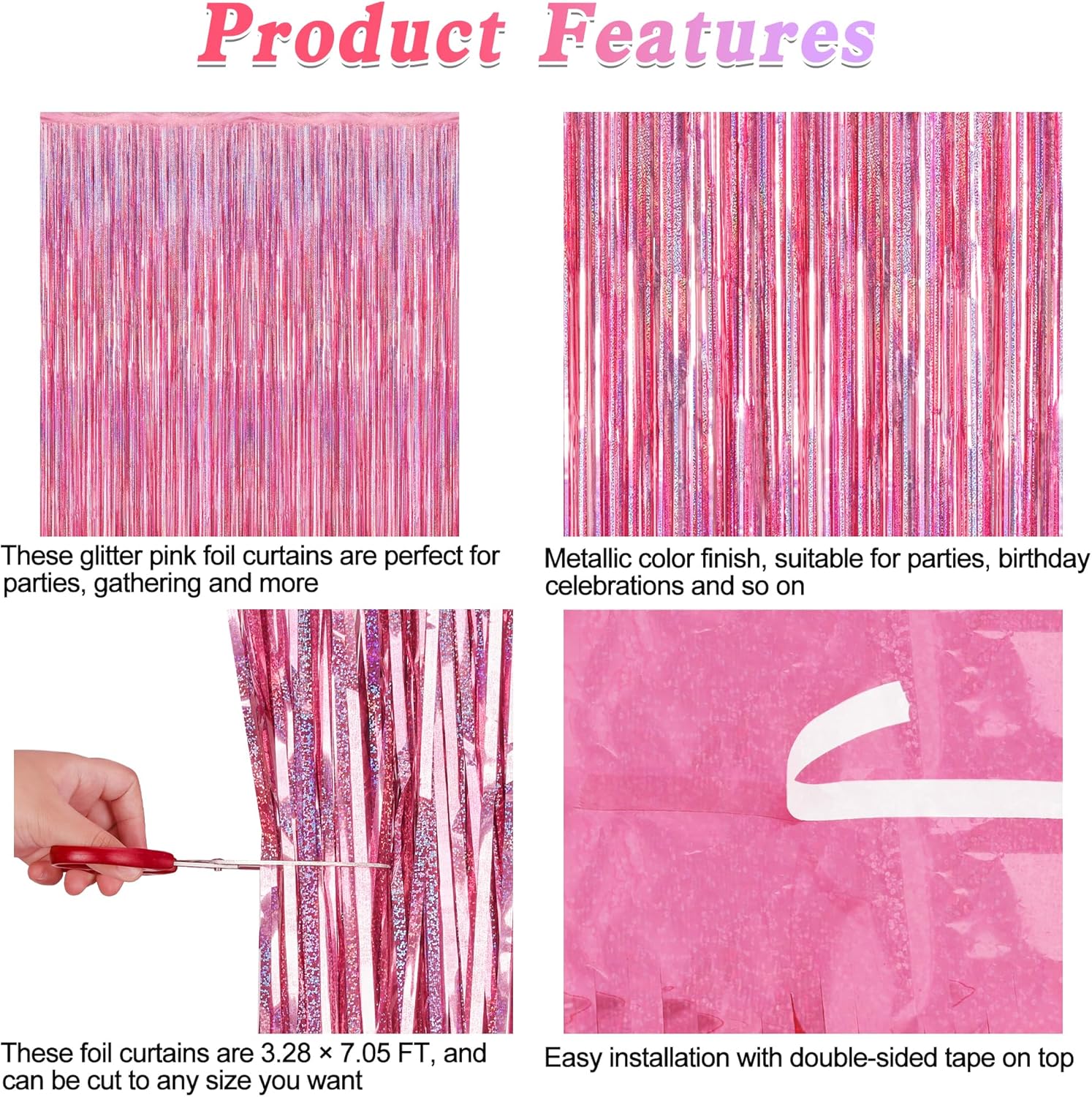 - Glitter Design: Each foil curtain displays a unique glitter pink color with a laser-reflective metallic finish, adding a glittery visual effect to your Valentine's Day decorations.