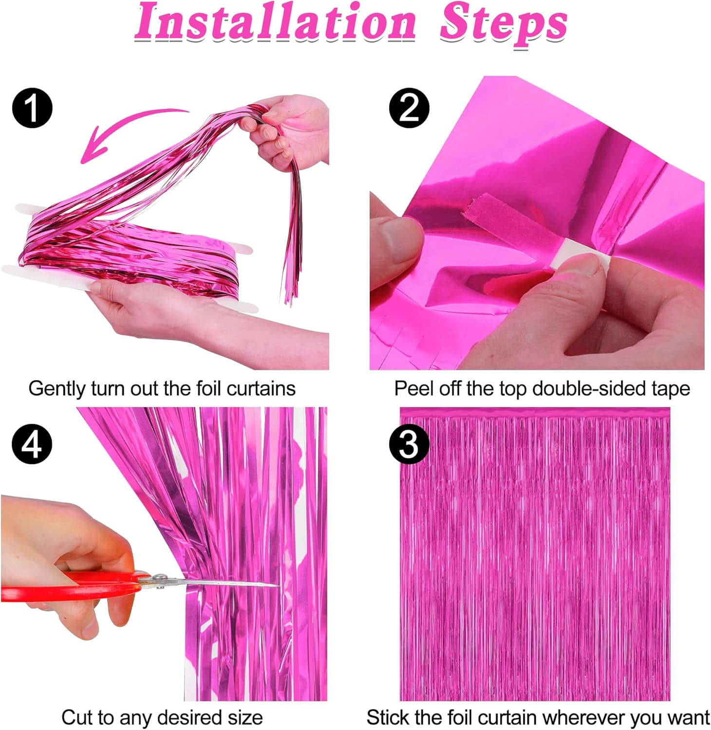 - Package Contents: The package includes 2 pcs hot pink tinsel backdrop, each with dimensions of 3.28 FT x 7.05 FT. These Valentines tinsel curtains can be trimmed to fit any specific area.