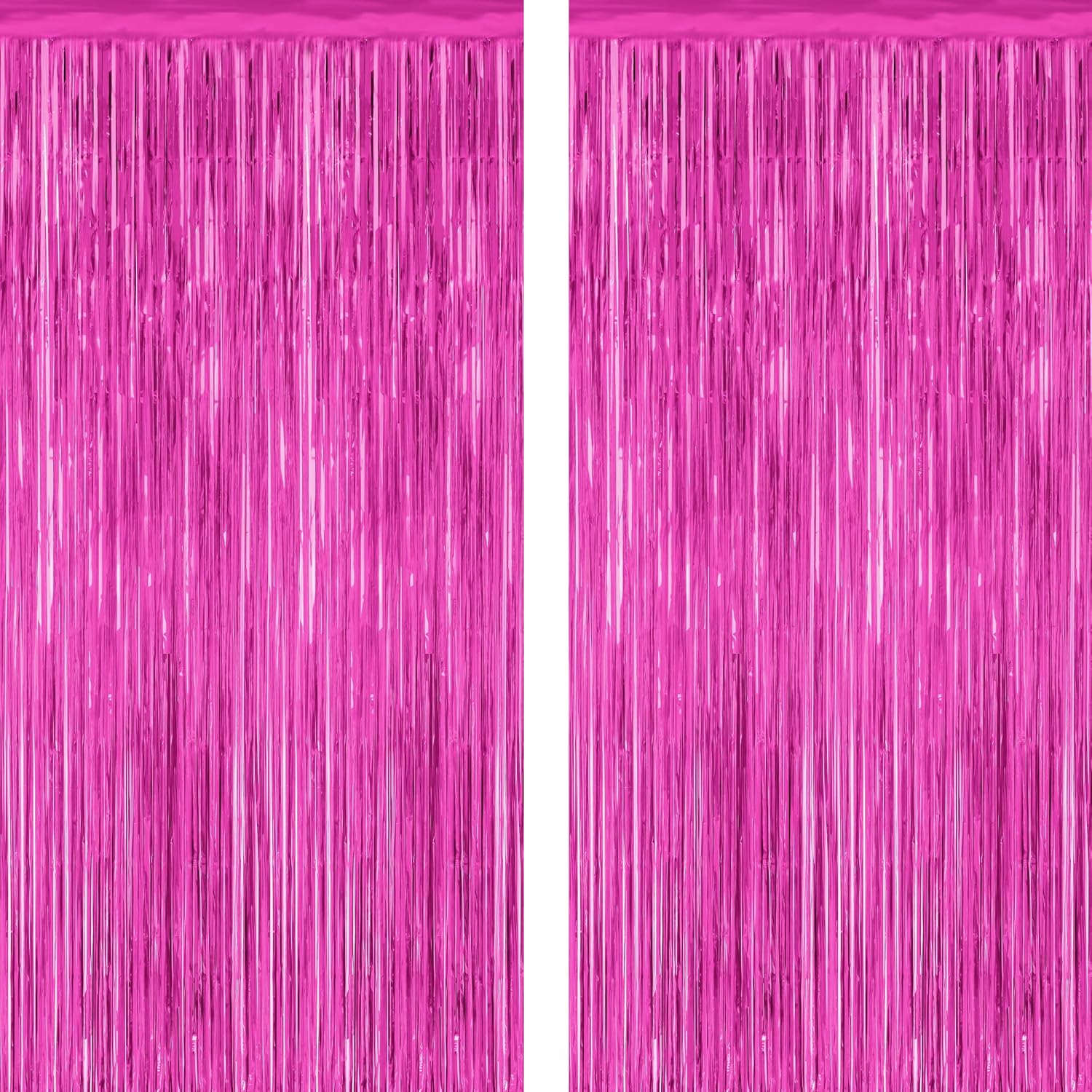2 Pack Hot Pink Party Decorations, 3.28 FT x 7.05 FT Hot Pink Backdrop, Metallic Rose Red Photo Backdrop Foil Curtains Tinsel Backdrop, Metallic Pink Party Decor Wedding Party Supplies