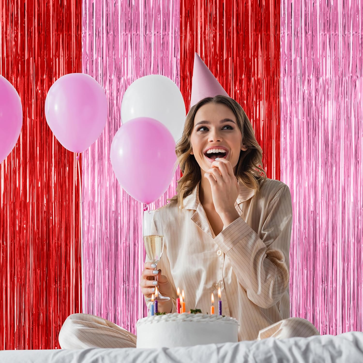 - Package Includes: This set includes 2 pcs red pink foil curtains, each measuring 3.28 x 7.05 feet, which can be cut to your desired length to add colorfulness to your occasion.