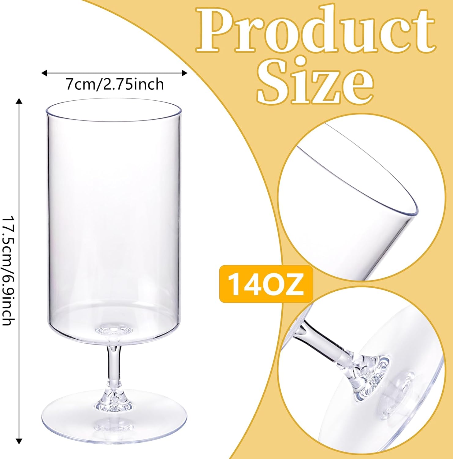 Ciaell 12 Pack Clear Plastic Wine Goblets - 14 Oz Plastic Wine Glasses with Short Stem - Disposable Water Drinking Cups for Juice, Cocktail, Wine, Party