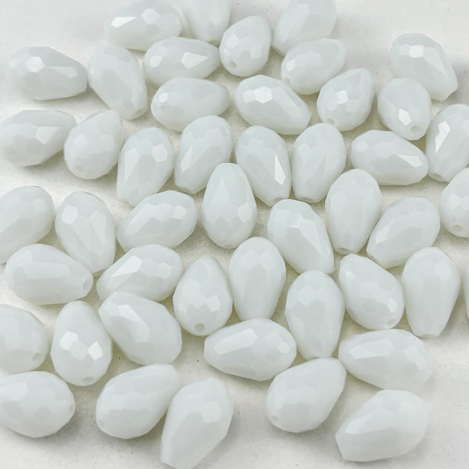 130pcs 6x8mm Teardrop Crystal Glass Beads for Jewelry Making, Faceted Vertical Hole Teardrop Glass Spacer Beads for Wind Chimes Bracelet Earring Necklace DIY Craft(White)