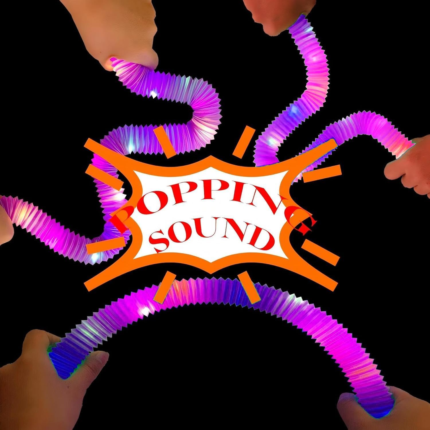 - When you stretch or twist the led pop tubes, it will make a satisfying "pop" sound and special touch, which can help to calm down and relieve anxiety by diverting attention to popping sounds. Nice choice as a playing kids party favors for indoor and outdoor