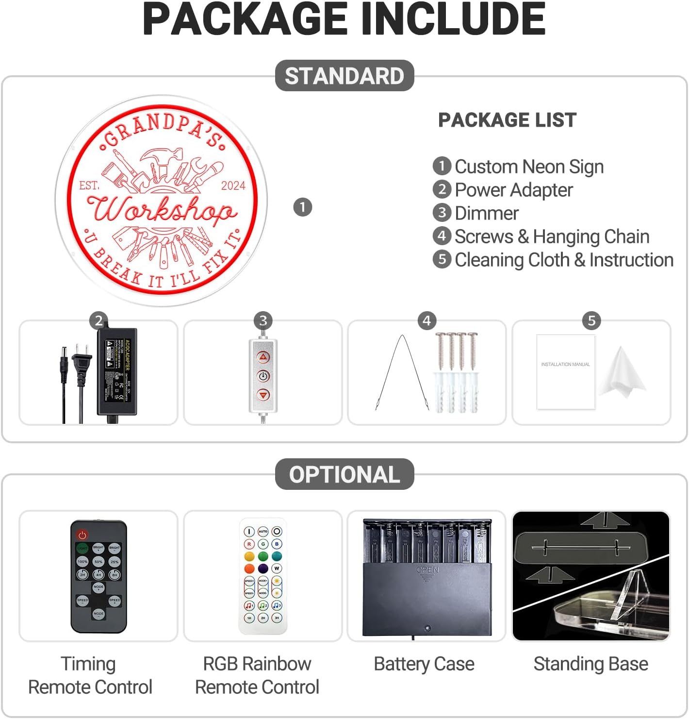 - 🎨【Personalized Garage Signs】The personalized garage neon sign create a romantic, warm and stylish atmosphere for your man cave and garage decor. Choose your favorite size and color, enter your custom text and so on and tailored to your decoration theme to create a truly belong you one-of-a-kind led sign. Click the "Customize Now" button to start!