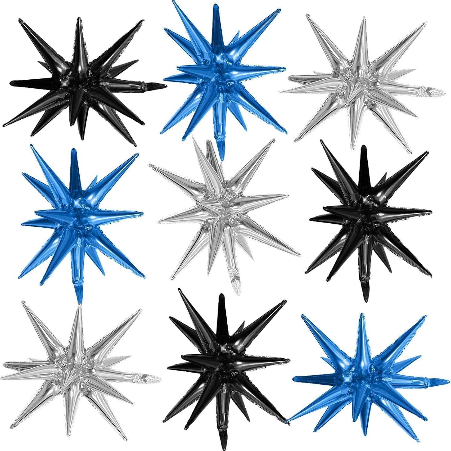 - Blue Black Silver Star Balloons Set:Package include 9pcs 22Inch explosion star balloons(blue x 3,Black x 3,silver x 3).Large enough to help you better decorate your party.