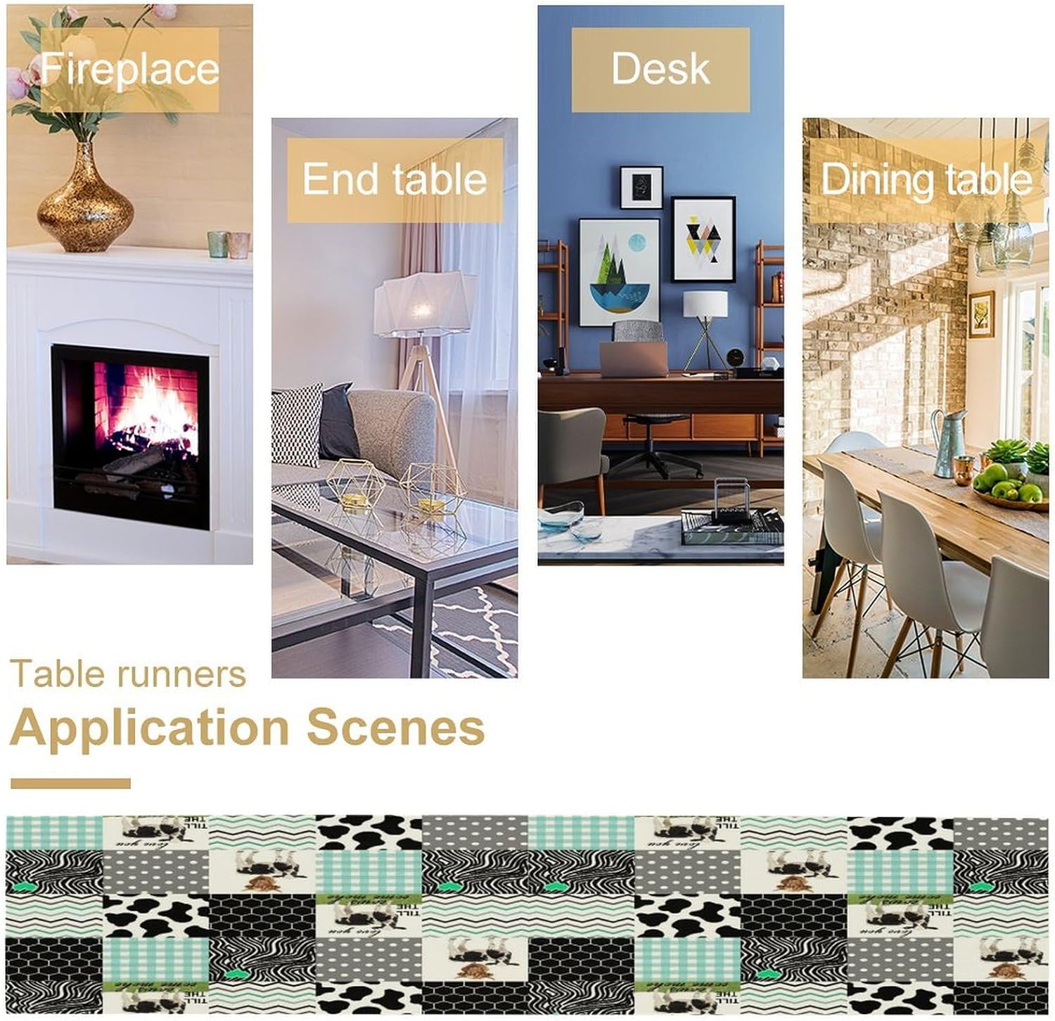 Cute Cow Print Table Runner,Farm Animals Honeycomb Plaid Stripes Cowhide Pattern Tablecloth Burlap for Hotel Indoors Outdoor Dining Room Kitchen Table Decor, 13x60in