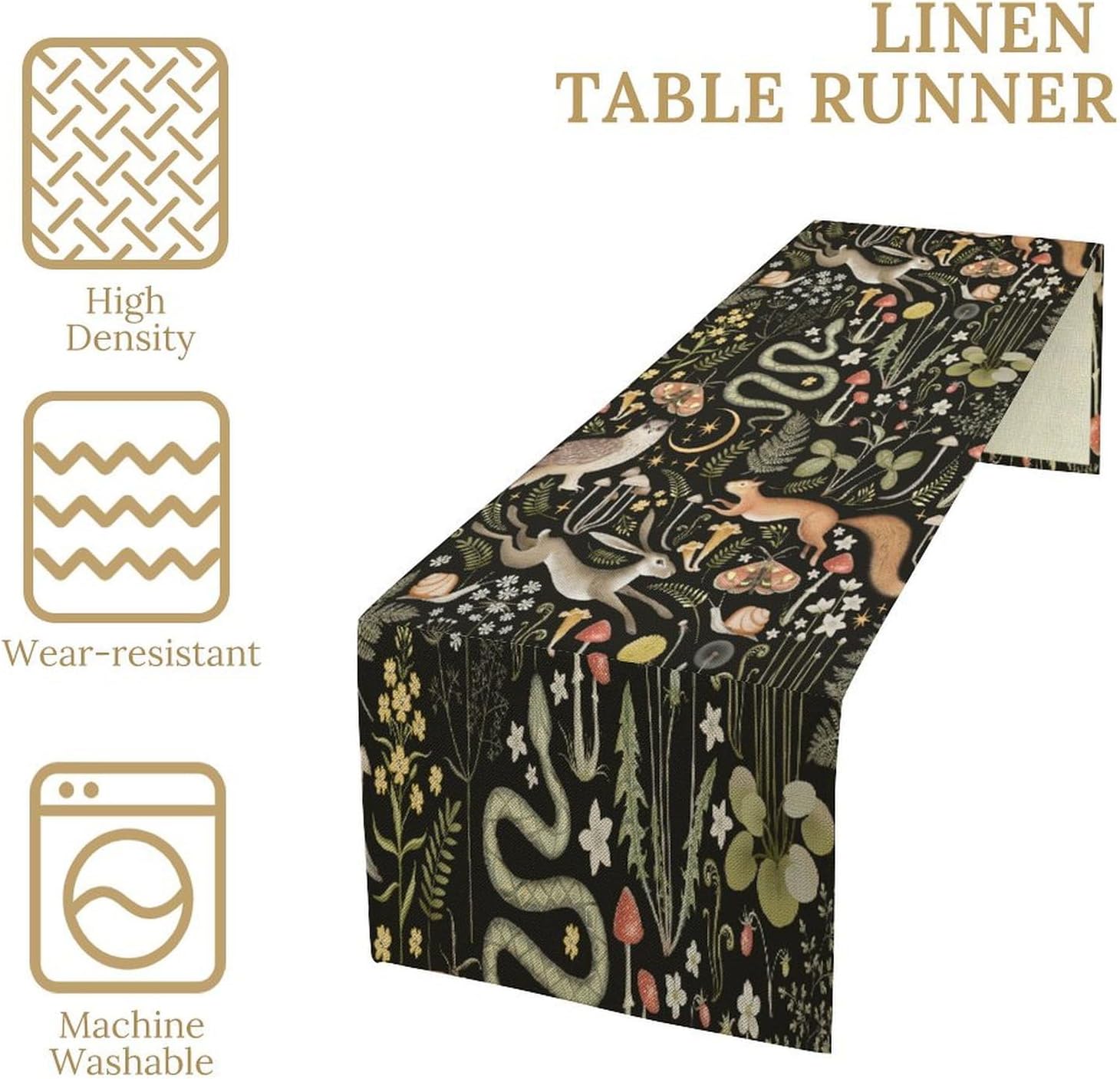 Mushroom Table Runner,Vintage Boho Forest Wild Animal Wildflower Botanical Plants Pattern Print Burlap Hotel Indoors Outdoor Dining Room Kitchen Holiday Party, 13x60in