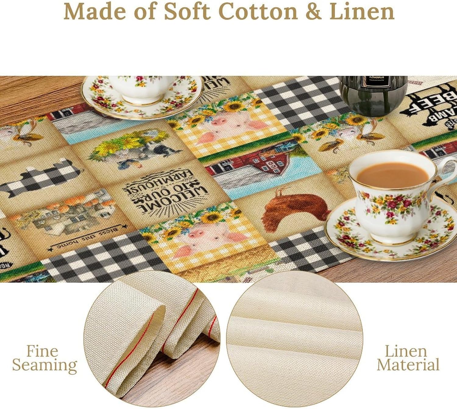 - Multi-purpose: Its practicality extends beyond just being a table runner - it can be used for farmhouse, kitchen, or country home decoration. Additionally, its size and design make it suitable for use as a coffee table cover, TV stand cover, or even a small table cover. This adaptability allows for creative and diverse ways to incorporate the farmhouse table runner into your home decor.