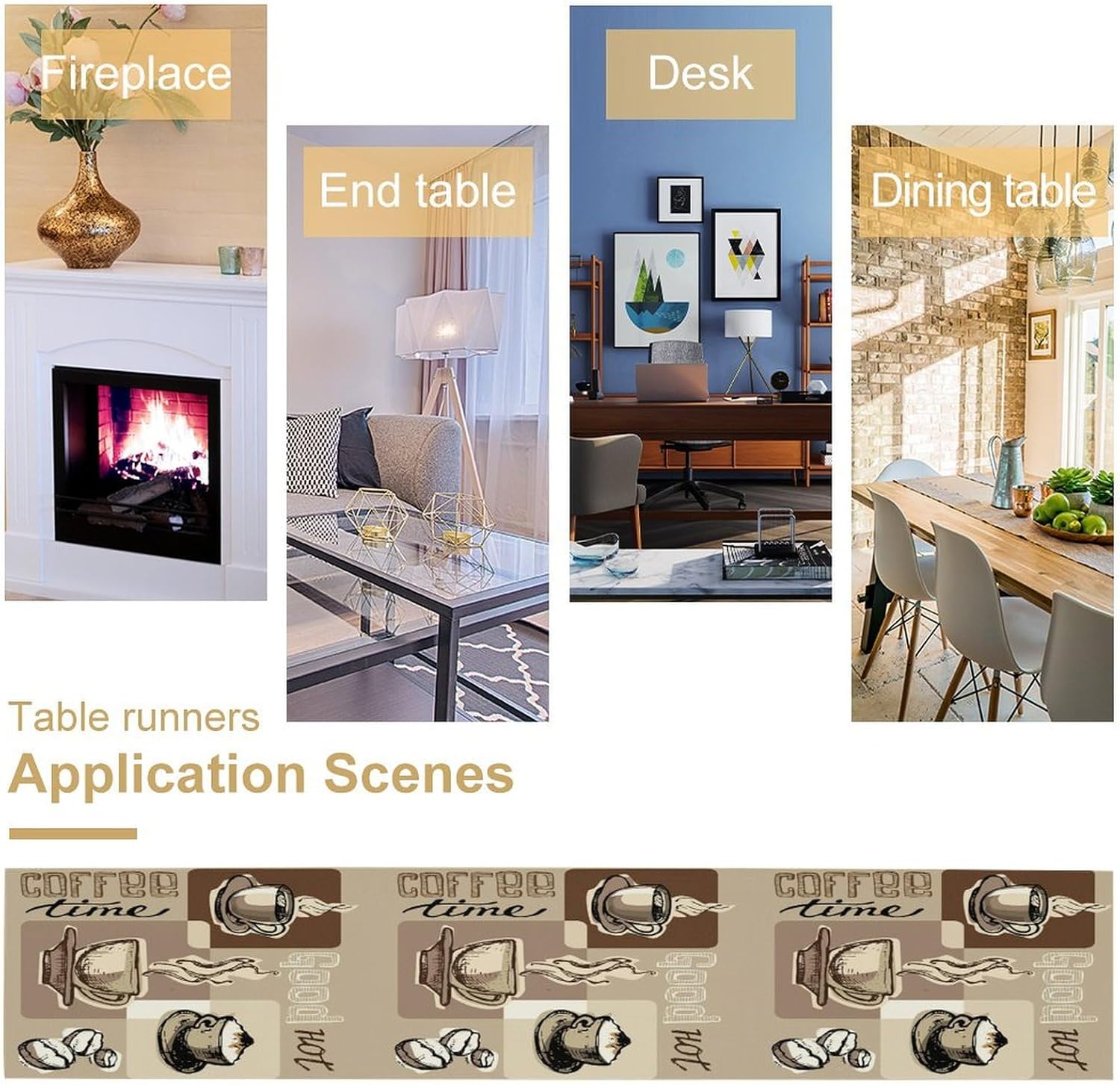Coffee Table Runner,Vintage Style Coffee Cup Bean Abstract Theme Pattern Print Tablecloth Burlap for Hotel Indoors Outdoor Dining Room Kitchen Table Decor, 13x70in