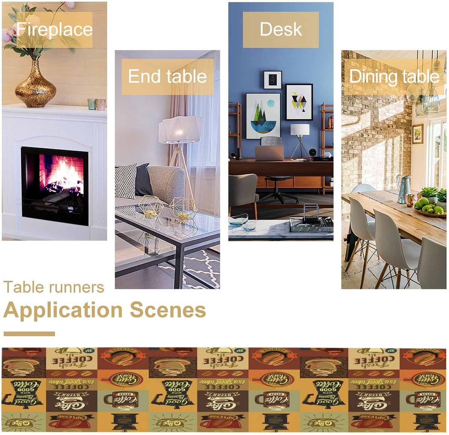 Coffee Table Runner,Vintage Style Coffee Beans Cups Theme Design Pattern Print Tablecloth Burlap for Hotel Indoors Outdoor Dining Room Kitchen Holiday Party, 13x60in