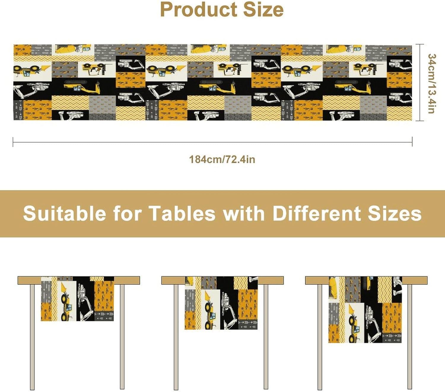 Excavator Table Runner,Boys Kids Construction Vehicles Equipment Trucks Cartoon Car Tablecloth Burlap for Hotel Indoors Outdoor Dining Room Kitchen Holiday Party, 13x80in