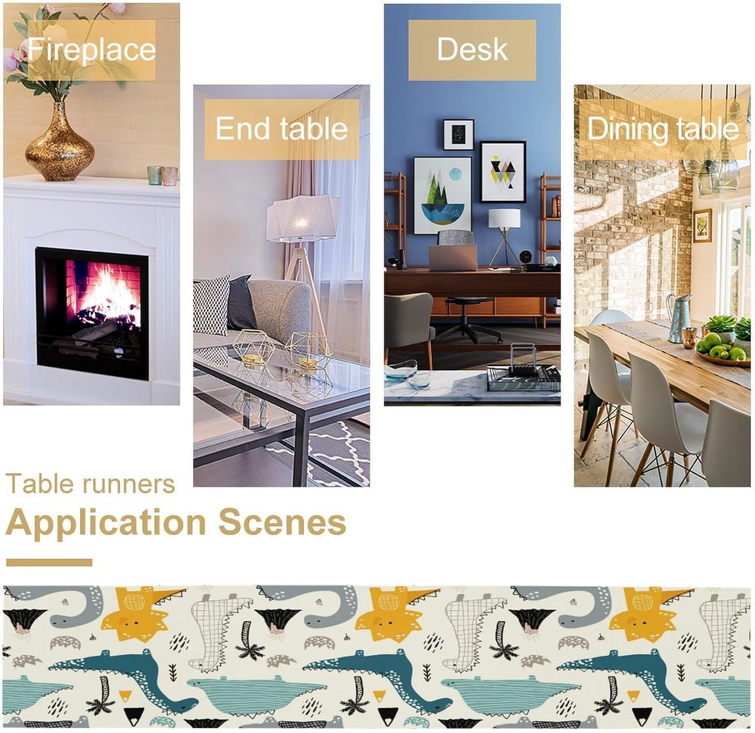 Cartoon Dinosaur Table Runner,Kids Boys Cute Various Dino Moutain Modern Abstract Print Tablecloth Burlap for Hotel Indoors Outdoor Dining Room Kitchen Holiday Party, 13x108in