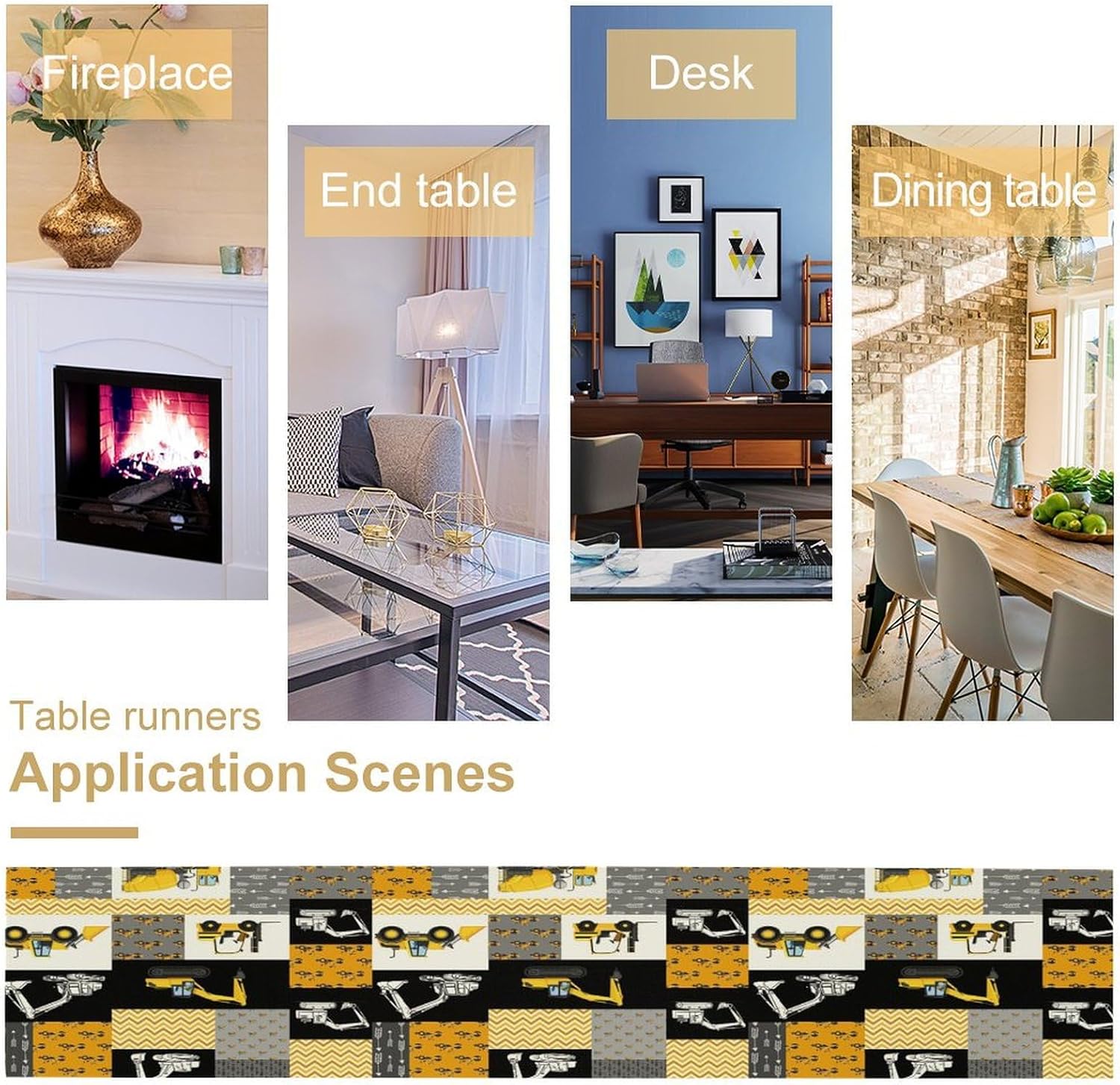 Excavator Table Runner,Boys Kids Construction Vehicles Equipment Trucks Cartoon Car Tablecloth Burlap for Hotel Indoors Outdoor Dining Room Kitchen Holiday Party, 13x108in