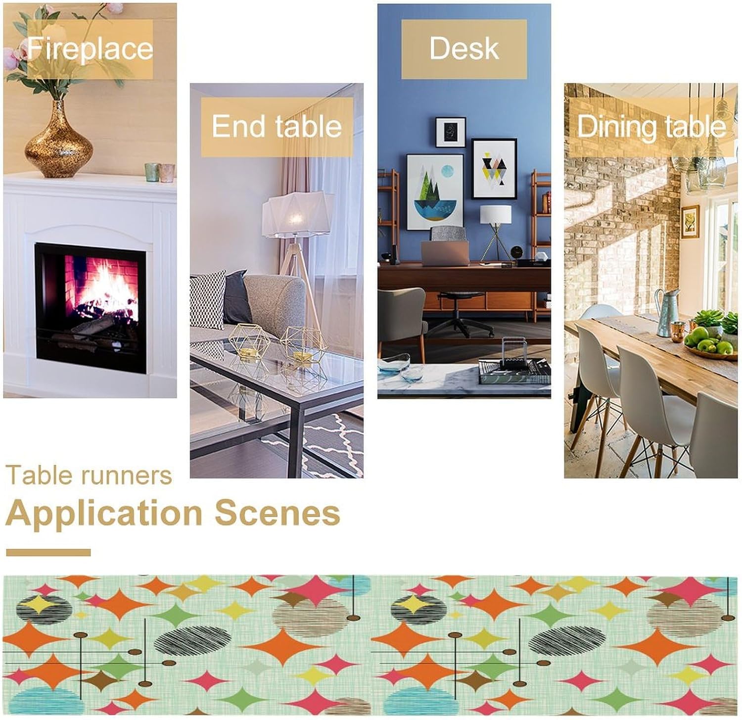 Mid Century Table Runner,Abstract Retro Modern Geometric Colorful Stripe Pattern Print Tablecloth Burlap for Hotel Indoors Outdoor Dining Room Kitchen Holiday Party, 13x36in