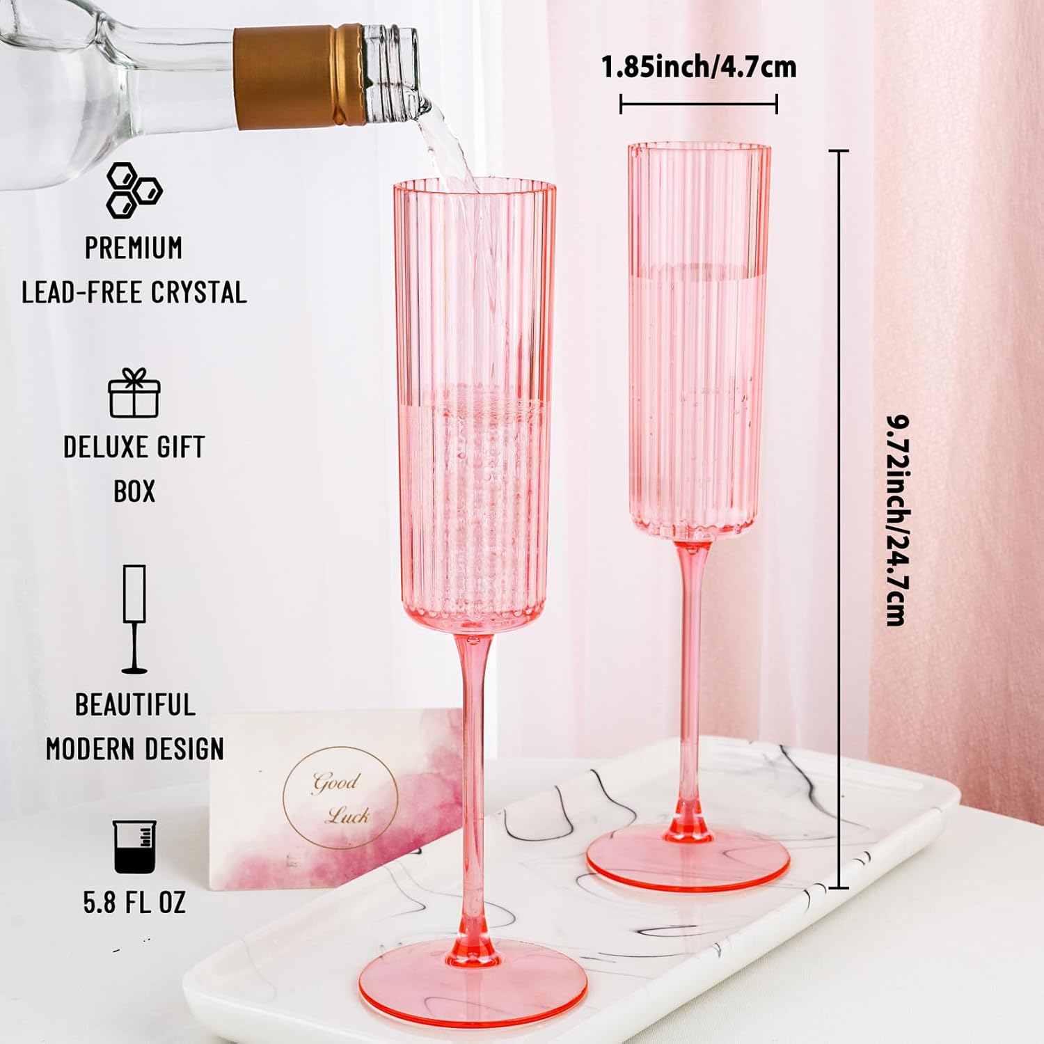 - Versatile for All Events: Ribbed champagne flutes suitable for various event scenarios. At weddings, it serves as a champagne flute to convey happiness and blessings; at birthday parties, it becomes an ideal choice for raising a glass to celebrate; during backyard barbecues, it is used as a practical cup for holding refreshing drinks; and even at high-end cocktail parties, it can perfectly fit and show its unique charm.