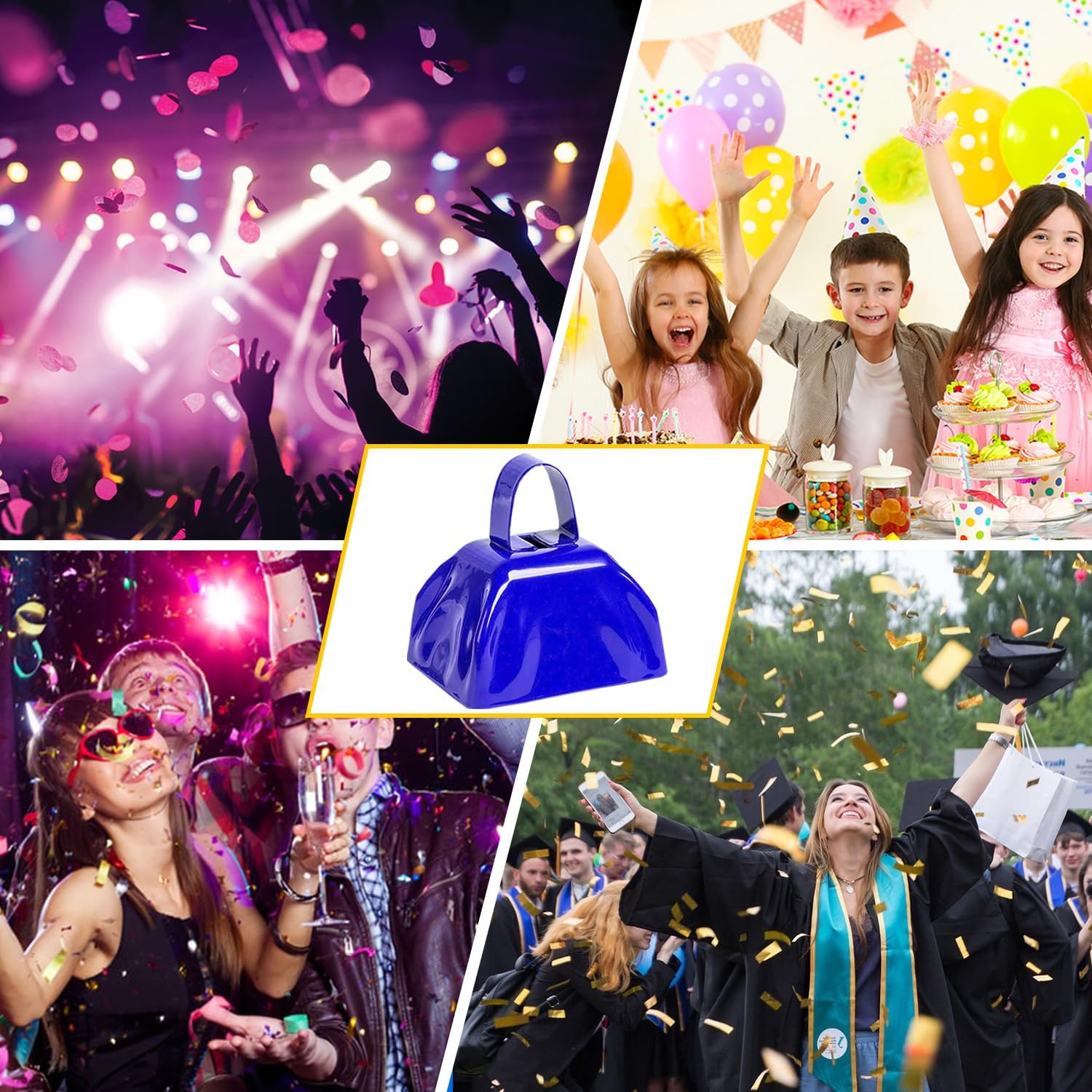 - PREMIUM QUALITY: Get ready to cheer! This 4-pack of durable metal cowbells delivers a loud, clear sound that'll last. Built to resist rust, dents, and fading, these bells will keep their bright color and strong sound even after repeated use at games, dances, and more!