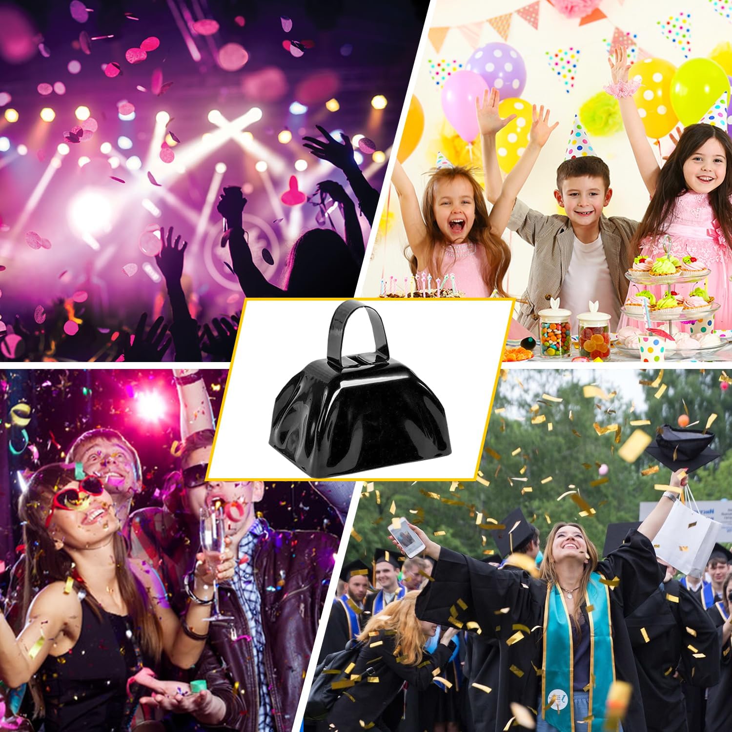• MULTIFUNCTIONAL COWBELLS: These versatile cowbells are perfect for creating festive noise at sporting events, holidays (Christmas, Halloween), weddings, parties, and more! They also serve as a handy signaling device for seniors or people with disabilities who need to attract attention.