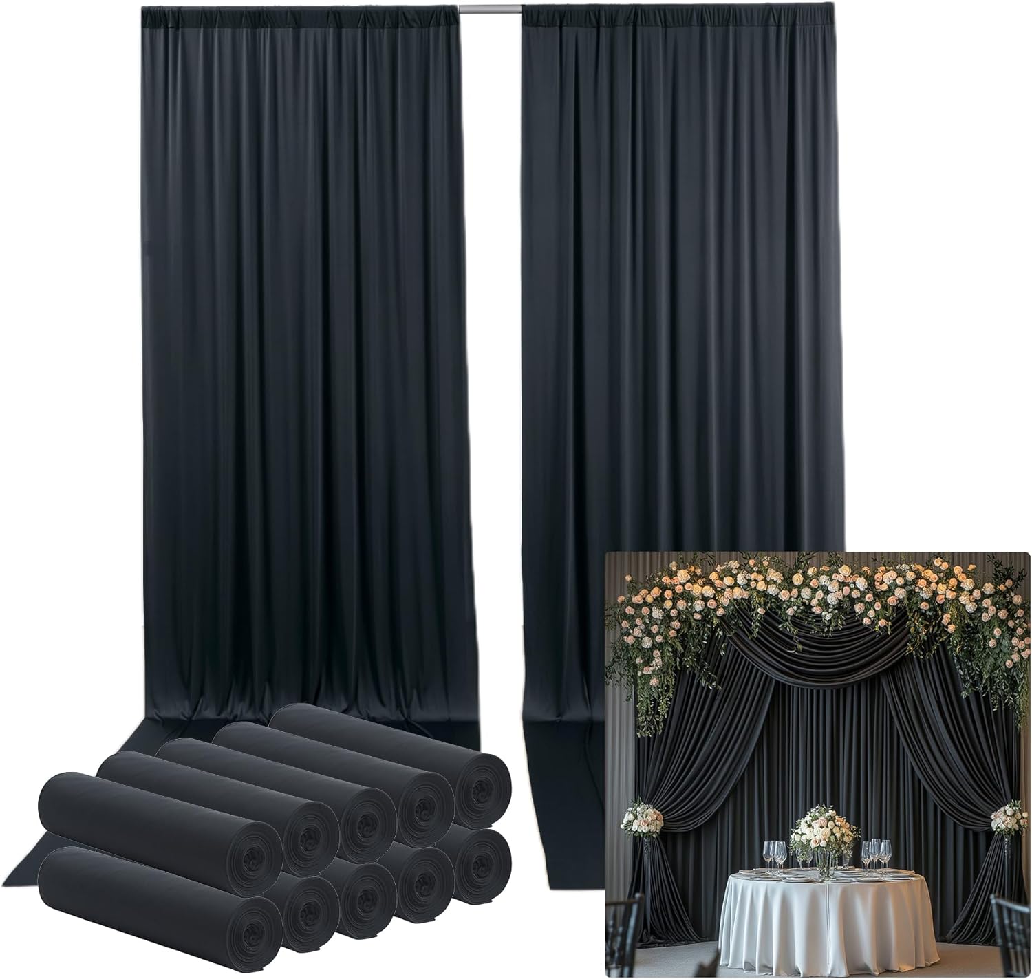 - Wrinkle Free Black Backdrop Curtain: This Black silky soft wedding backdrop for reception is made of wrinkle free material, known for its soft and silky texture, which will give you an extraordinary feeling of touch. The backdrop is exquisitely sewn, smooth and durable fpolyester with natural drape, add more elegance and romance to your weddings.