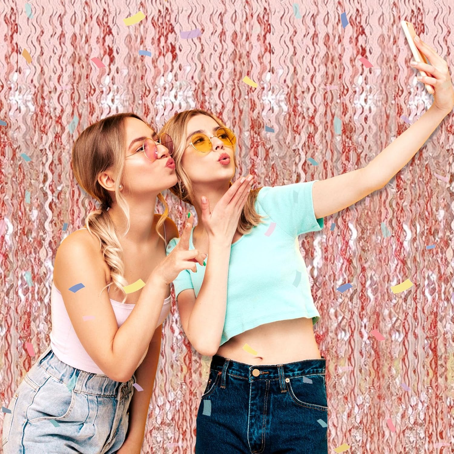 - Easy To Assemble | Strong Adhesive | Not Easy Fade : The foil fringe curtain backdrop party decorations come with double-sided adhesive tape, easy to use, just tear off the back of adhesive tape, then paste this streamers backdrop curtains on the top of wall, window, table, or as door fringe decoration.