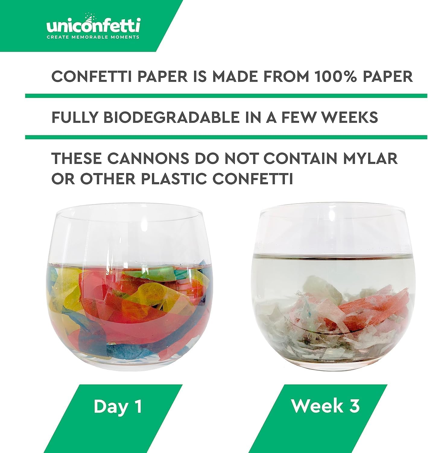 - š 100% BIODEGRADABLE & SAFE - Confetti are made of lightweight fire resistant papers, 100% biodegradable. Color dye is non-toxic and won't rub onto your clothing. 100% safe for your party and good for the environment.