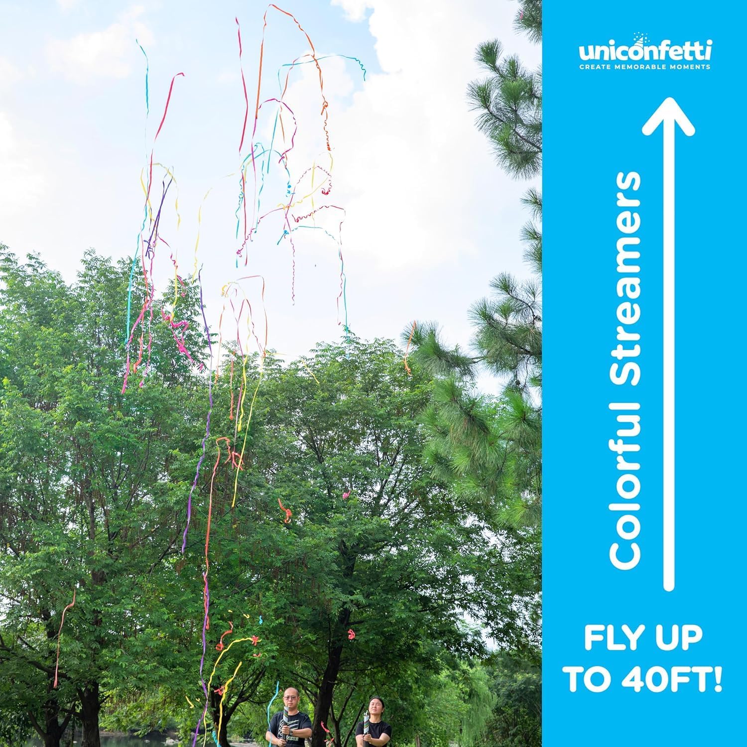 - š EASY POINT & TWIST ACTION - Don't need the strongest arms to blow up these babies! Point upwards away from people and twist to shoot, confetti paper is loaded on top of compressed air and is launched by twisting the cannon. Operation manual is included inside the box.