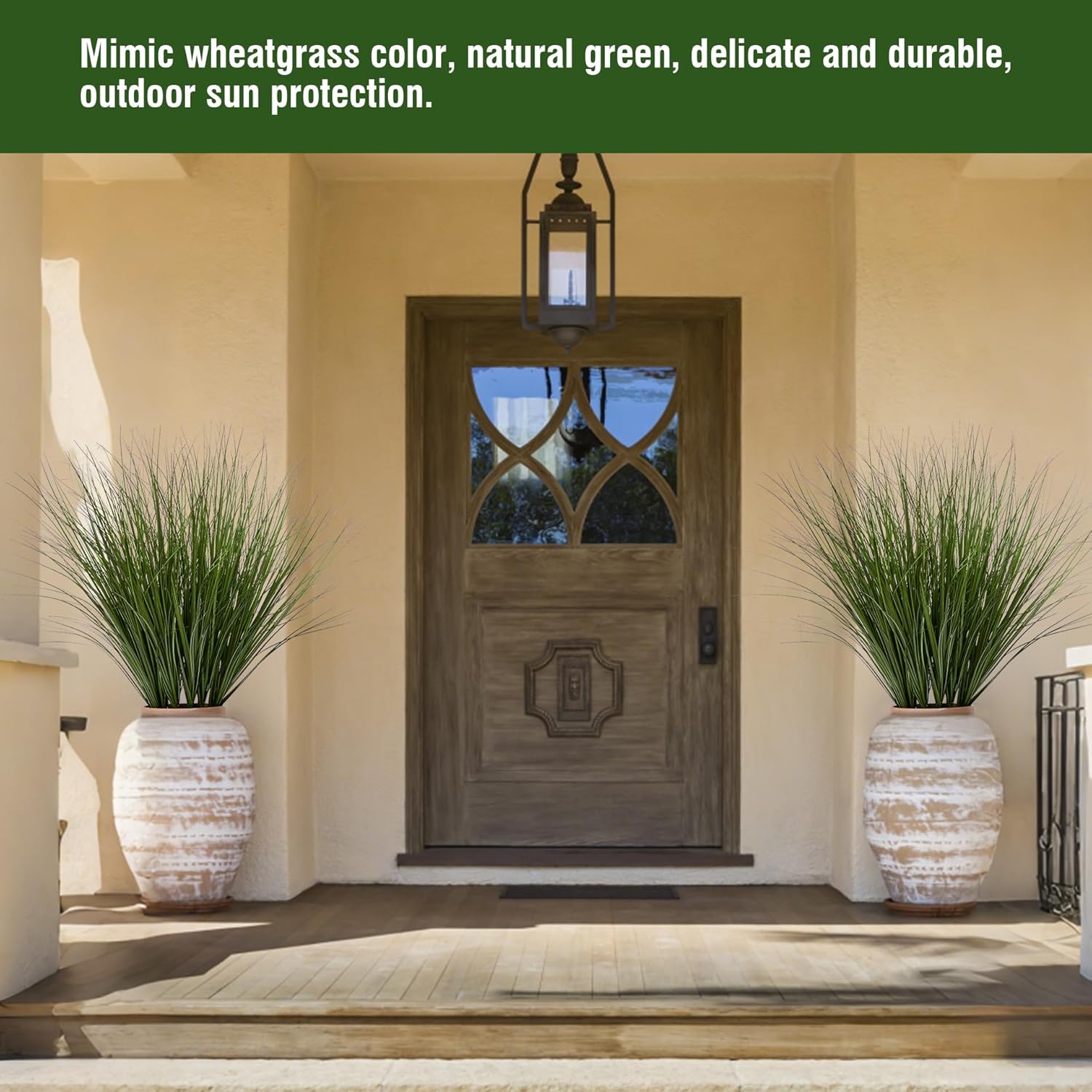 - HIGH-QUALITY: Made from premium plastic plants material, it 4.5 inches in length, 4.5 inches in width and 26.4 inches in height. Our artificial wheat grass is built to last. It can withstand various weather conditions outdoor without fading or losing its shape. The sturdy construction ensures that it remains intact even with frequent handling indoor. Unlike real wheatgrass, it requires no maintenance, saving you time . This makes it a practical and reliable option for long-term Home Decoration