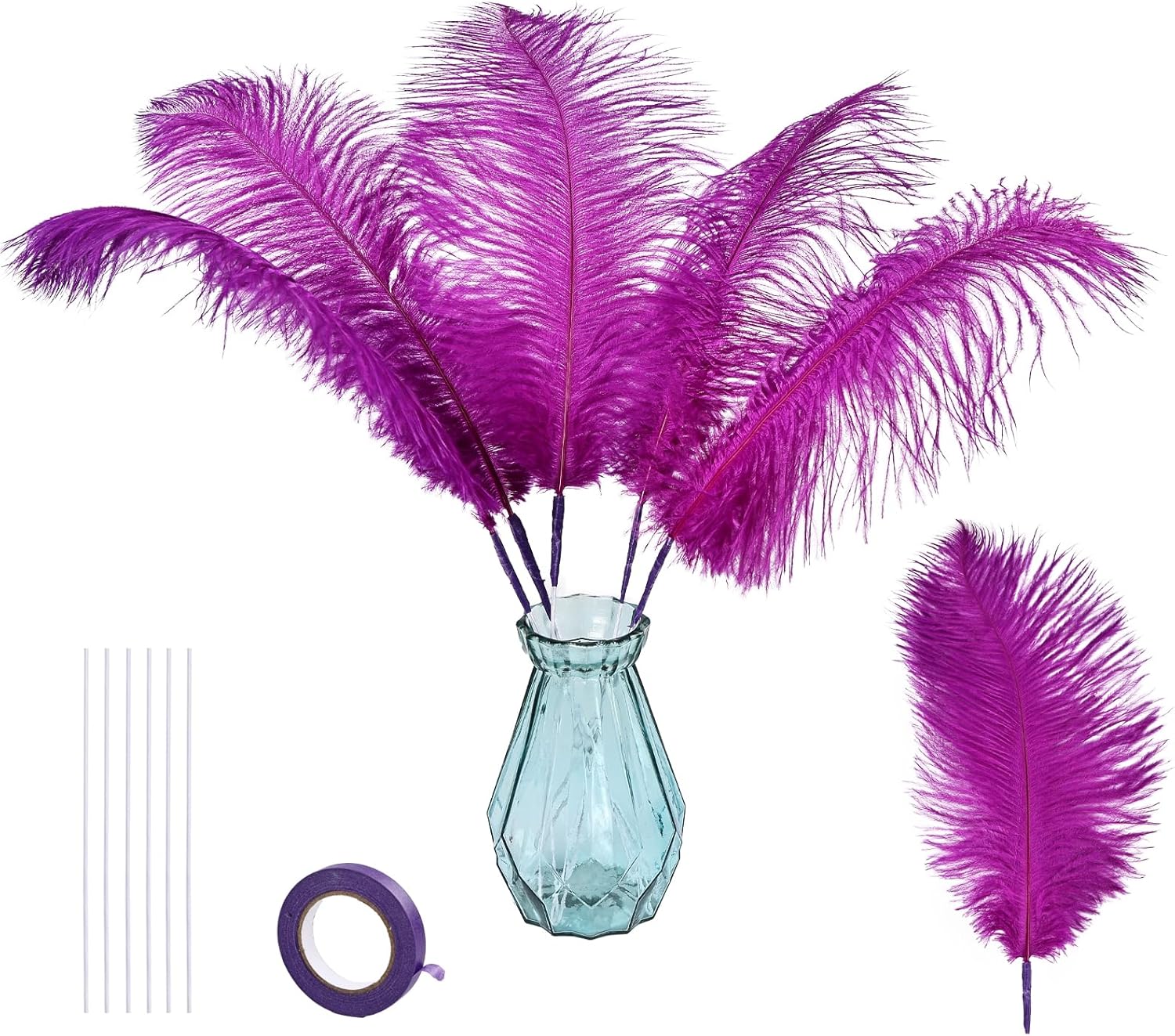 Bulk Purple Ostrich Feathers - 12pcs 12-14inch Crafting Supplies for Centerpiece Table Decorations
