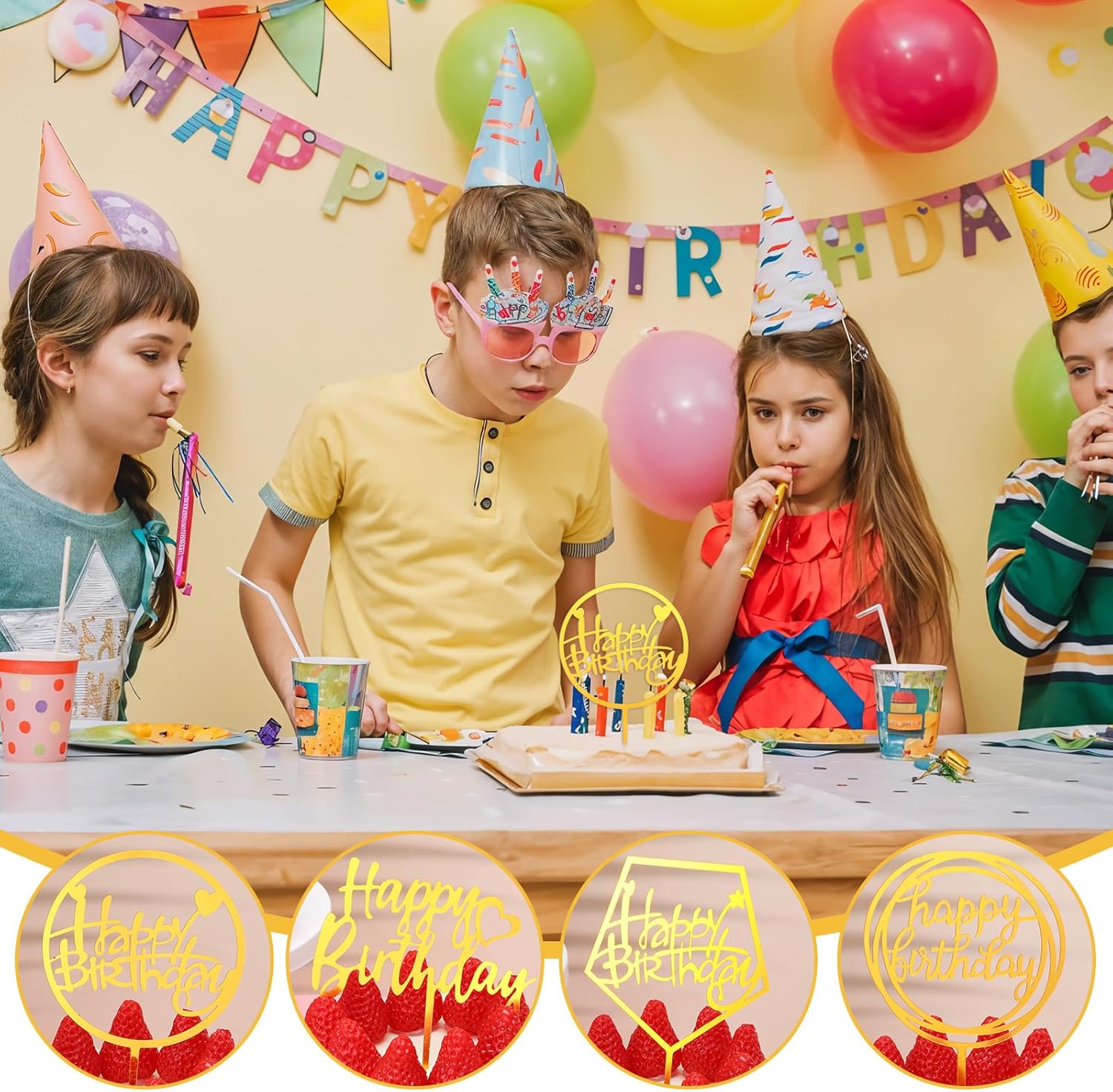 100 Pcs Gold Happy Birthday Cake Toppers Gold Acrylic Cake Topper Glitter Birthday Cake Decorations Double Sided Cake Topper for Children Supplies Accessories Decorations Figurines Ornaments