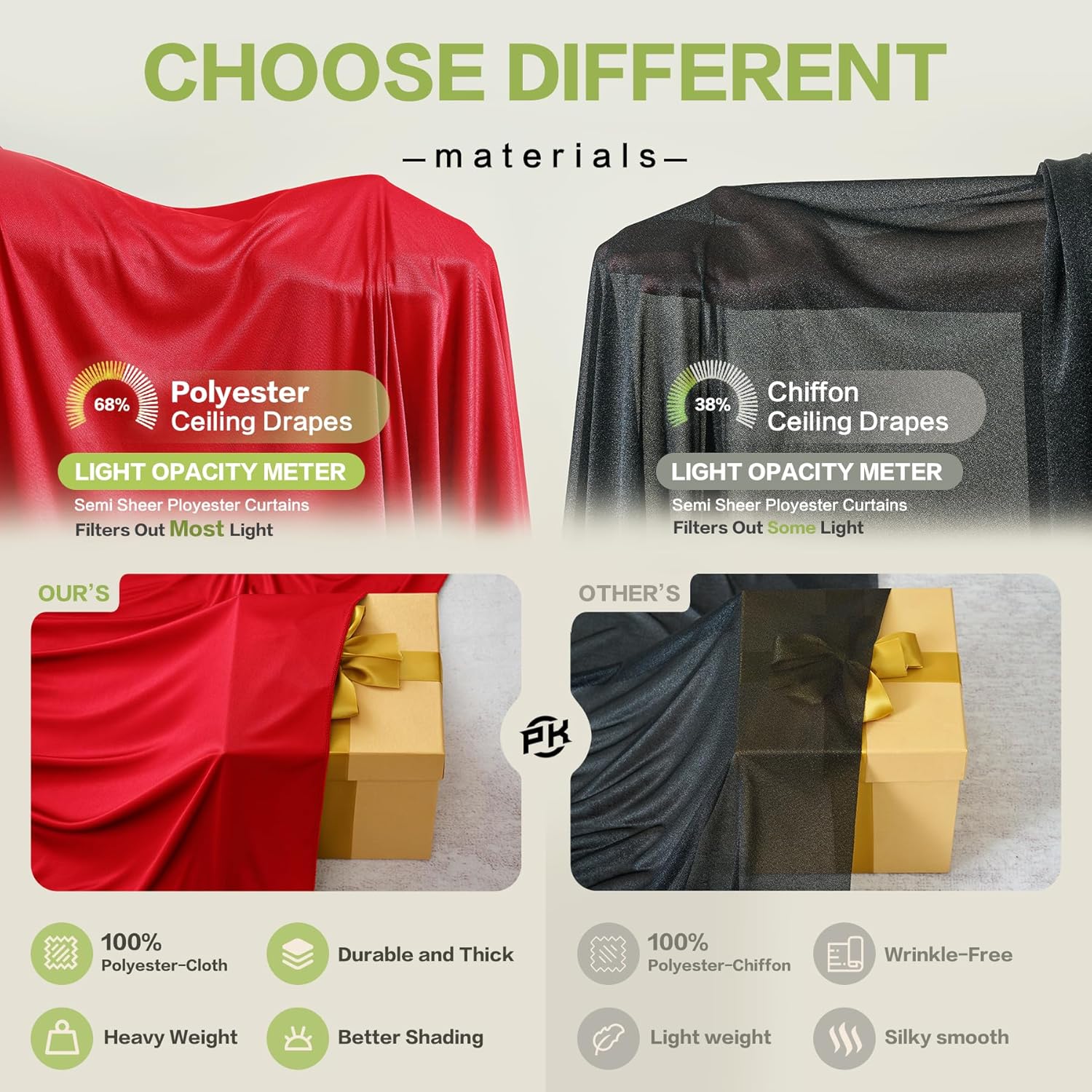 - 15FT Extra Long Backdrop Drapes: 10 Panels 5ftx15ft Red Backdrop Curtains for Parties. Totally 50FT(Width) x 15FT(Height). cortinas para fiestas decoracion.