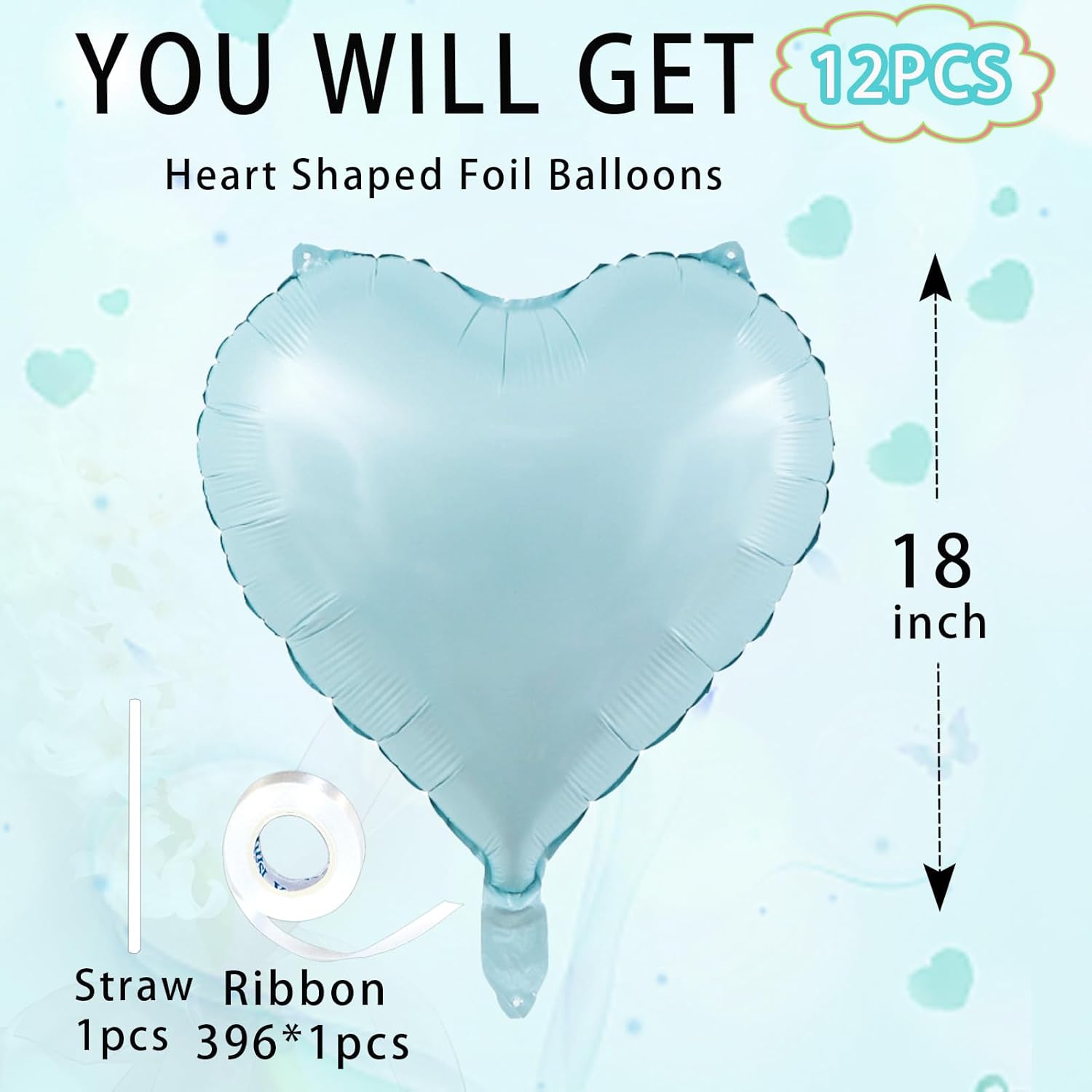 • Heart-Shaped Foil Balloons:The package includes 6Pcs light Blue and 6Pcs light pink balloons measuring 18 inches, 1Pcs white ribbon 393 inches long, 1Pcs straw, which can help you decorate the party better.