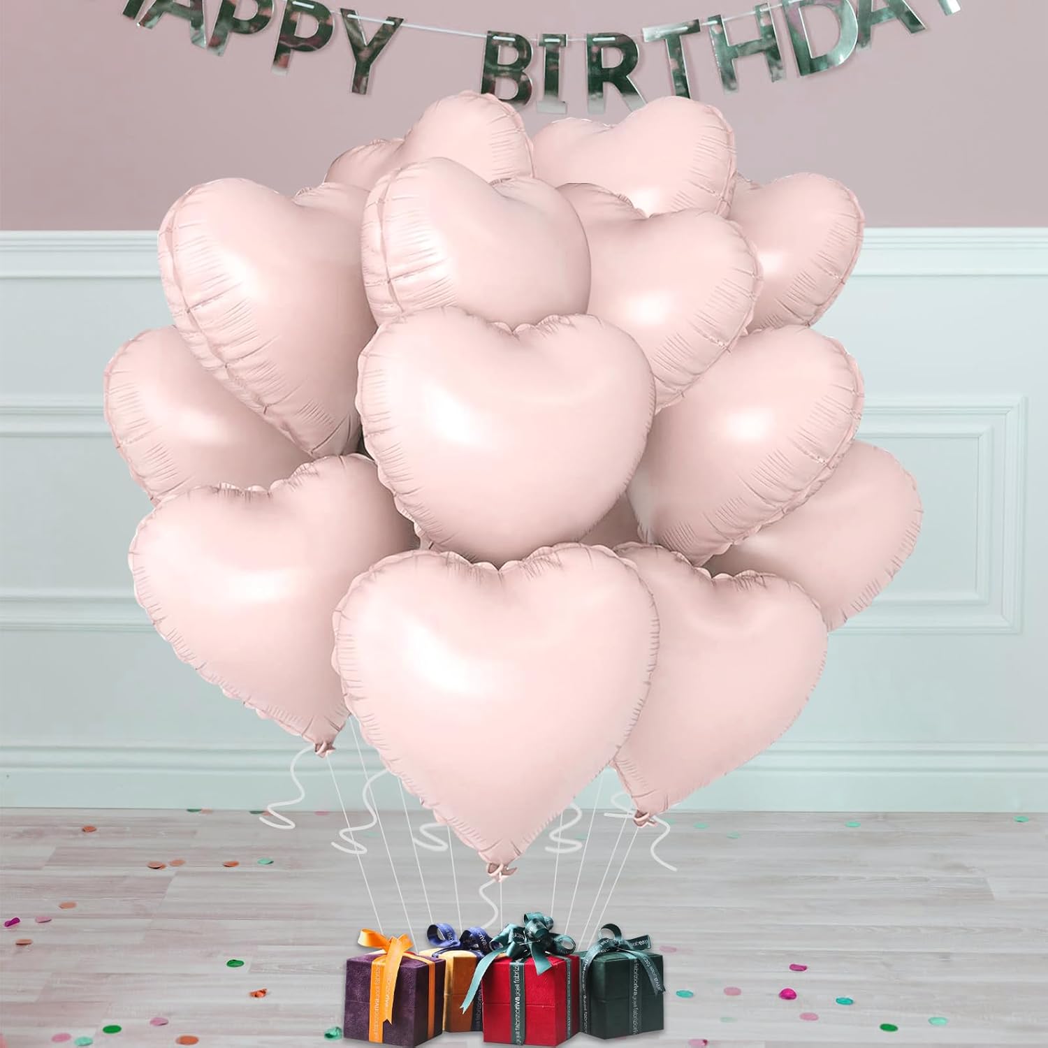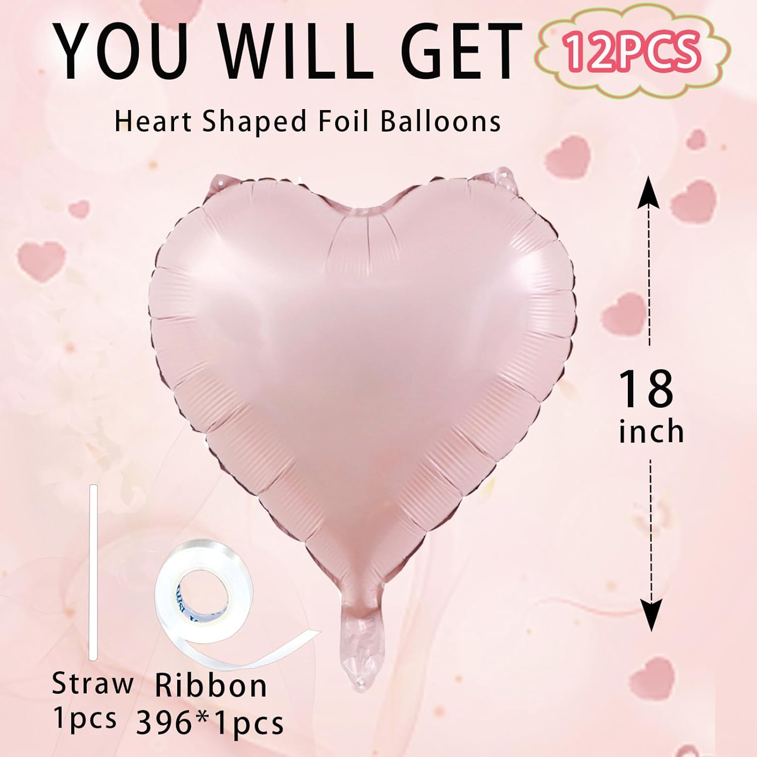 Pink Heart Ballloons,18 Inch Pastel Pink Foil Love Heart Shaped Balloons 12Pcs Baby Pink love balloon for Anniversary Wedding Engagement Birthday Party Baby Shower Decorations