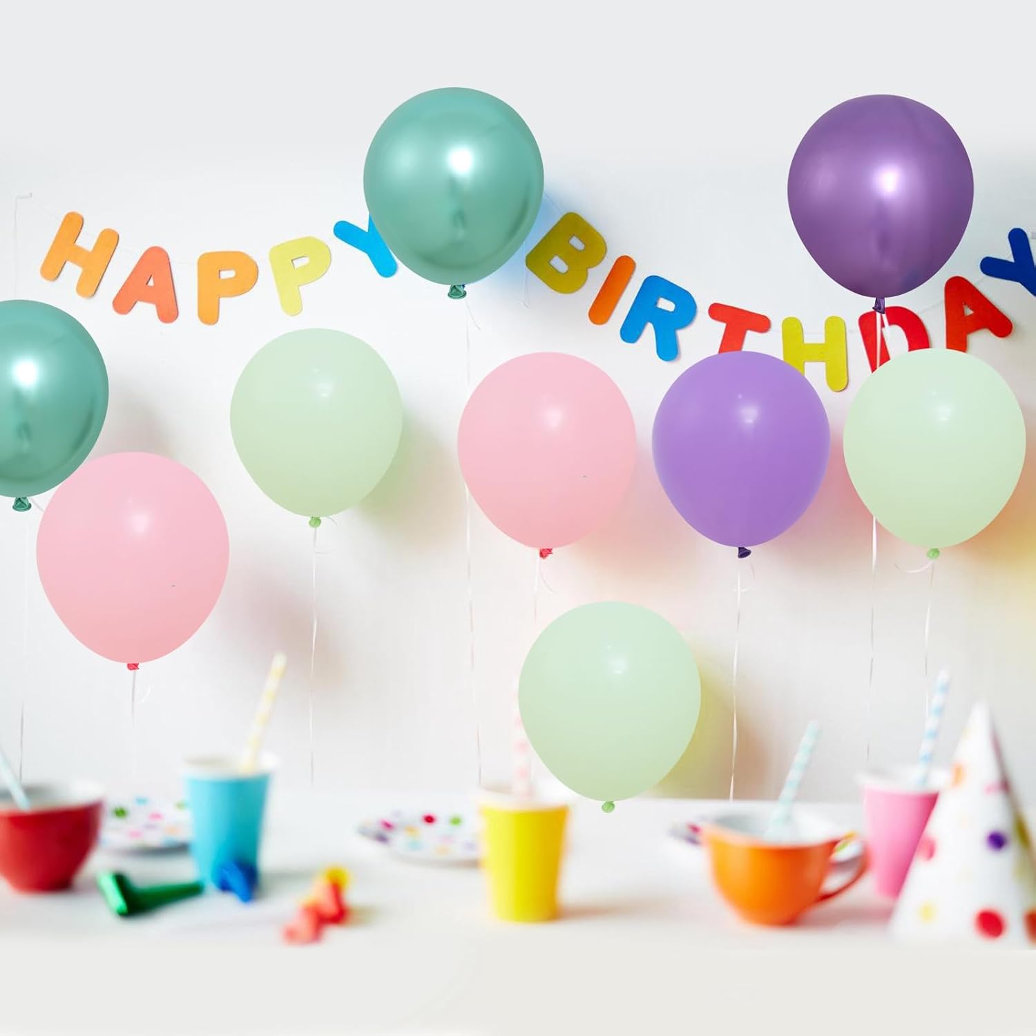 - Package Include: Our mermaid balloons kit includes 15 pcs pastel pink balloons, 15 pcs pastel purple balloons, 10 pcs pastel green balloons, 5 pcs metallic purple balloons, 5 pcs metallic green balloons, 1 hot pink ribbon and 1 green ribbon
