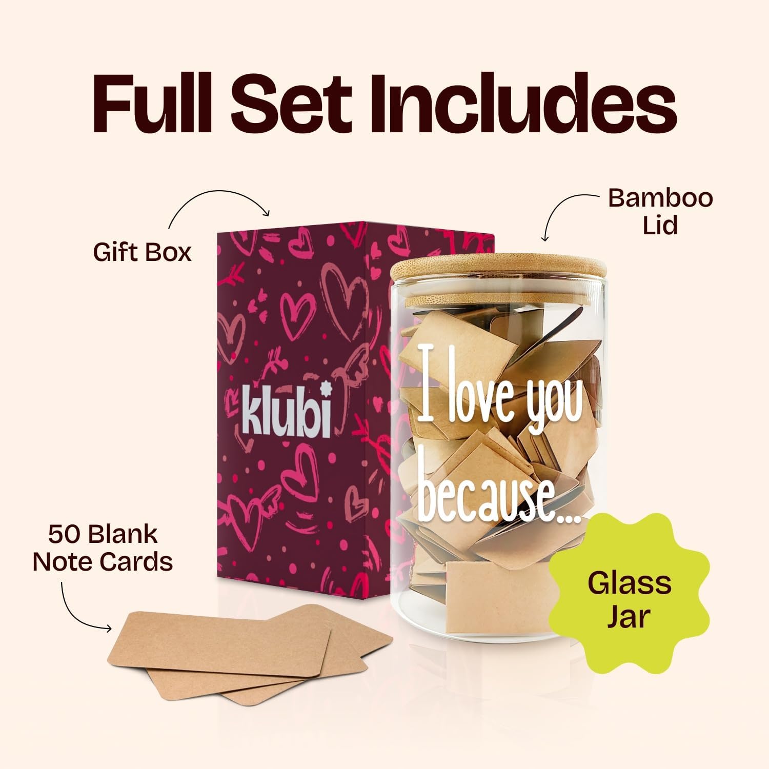 - A Thoughtful Way to Express Love β This love note jar includes 50 blank note cards, allowing you to write heartfelt messages, romantic confessions, or words of encouragement for your special someone. It comes beautifully packaged in a red giftable box, making it a meaningful and elegant present for any occasion - a Fathers Day Gift from Daughter or Wife, Mothers Day Gifts for Wife from Husband, Reasons Why I Love You Jar or Gratitude Jar.