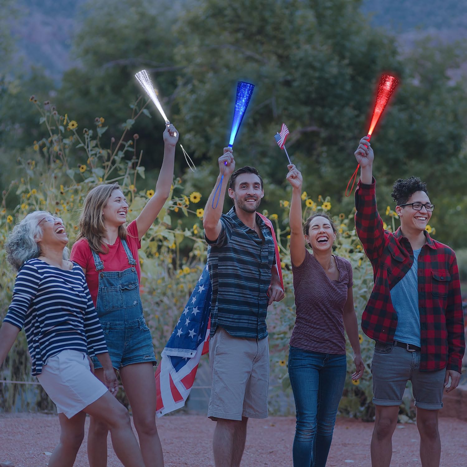 - Glow Fiber Wands: You will get total 48 pack of red blue white light fiber optic wands (16 of each color). These bulk light up toys can bright enough to attract anyone's sights, you can have fun with your friends at evening party with these colorful flashing wand stick