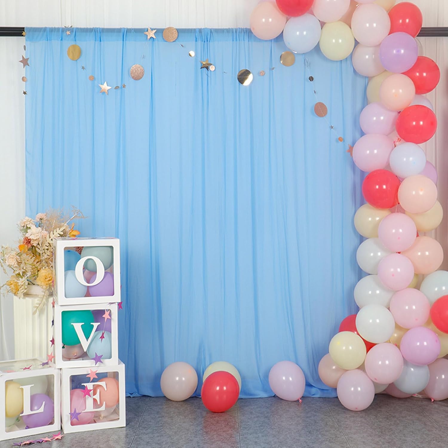 - ā SHEER CHIFFON CURTAINS :Includes 2 Panels Width 58 Inches (total width 116 inches for 2 panels) chiffon backdrop curtain Sky Blue color--Different electronic devices seeing the image colors will different . Please refer to the actual product for specific color.
