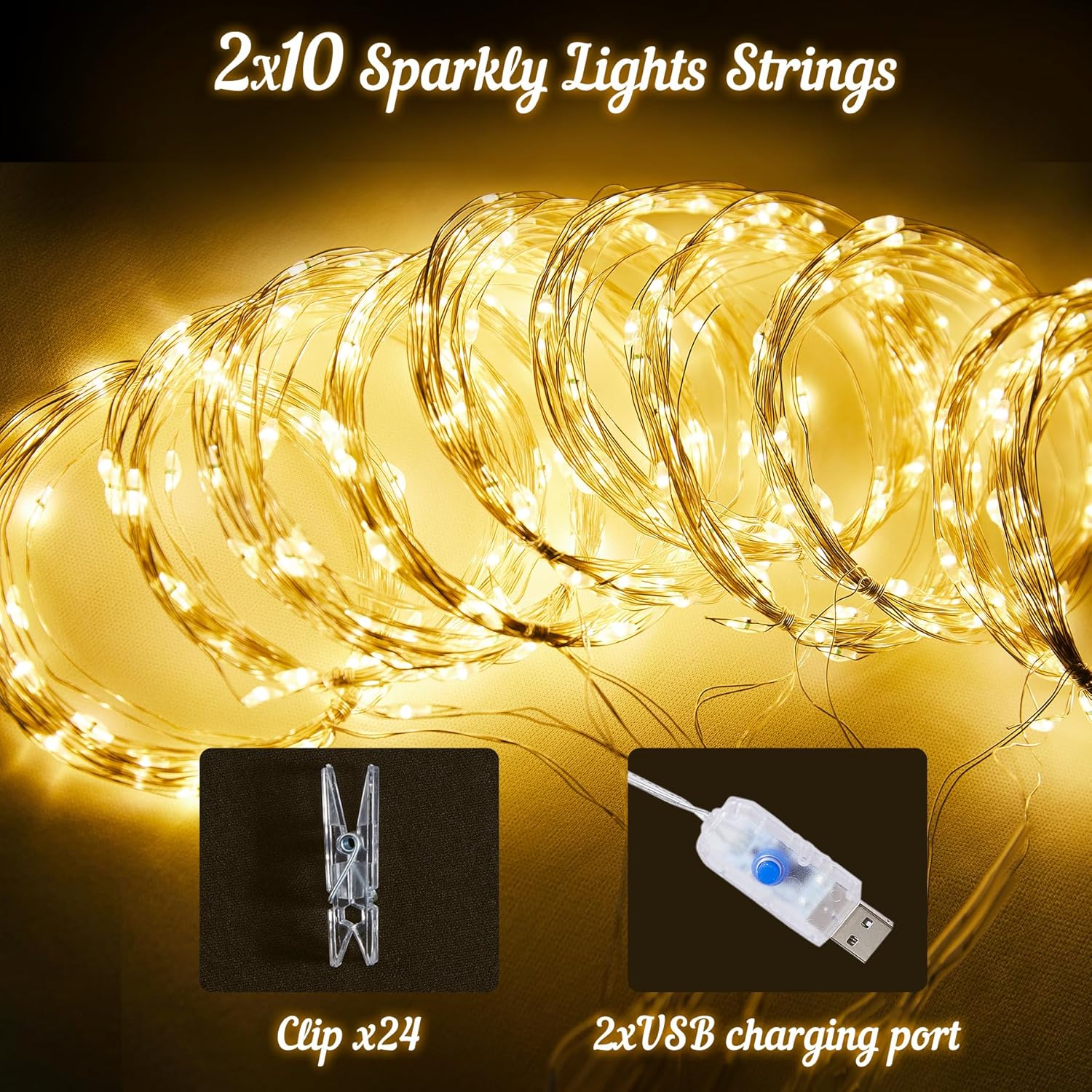 - Backdrop Curtains with Lights: Each set includes 4 pieces of 5x8ft lavender sheer tulle backdrop curtains, 2 sets of 10 ft warm white LED string lights, and 24 clips. These sheer curtains with lights are perfect for wedding photo booths or wedding reception backdrops, bringing a romantic and charming atmosphere to evening events