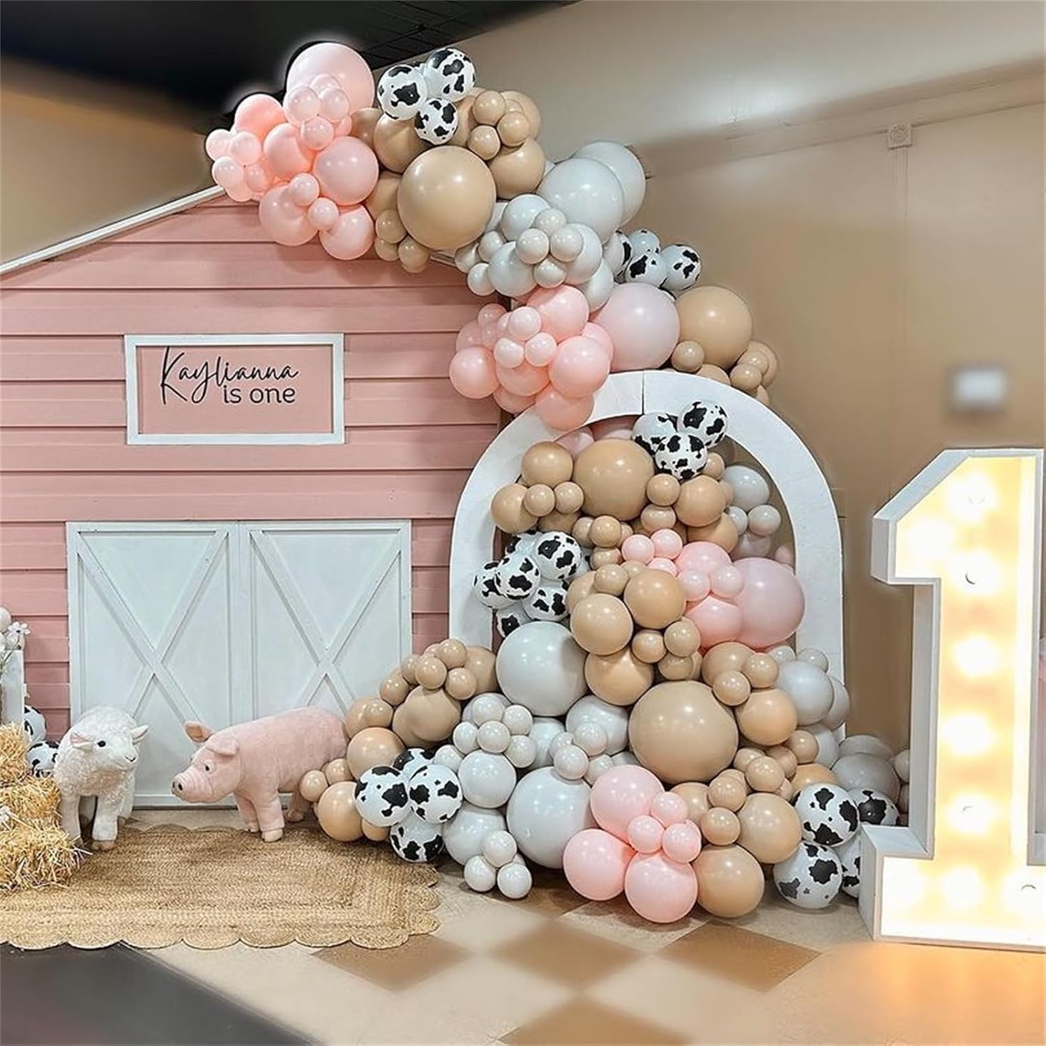 - Party Balloons Set: The cowgirl balloons set have 60pcs 12 inch helium balloons, include 15pcs pastel pink balloons, 15pcs light pink balloons, 10pcs cream beige balloons, 10pcs cow print balloons, 10pcs white balloons, 2pcs pink and white balloon ribbon.