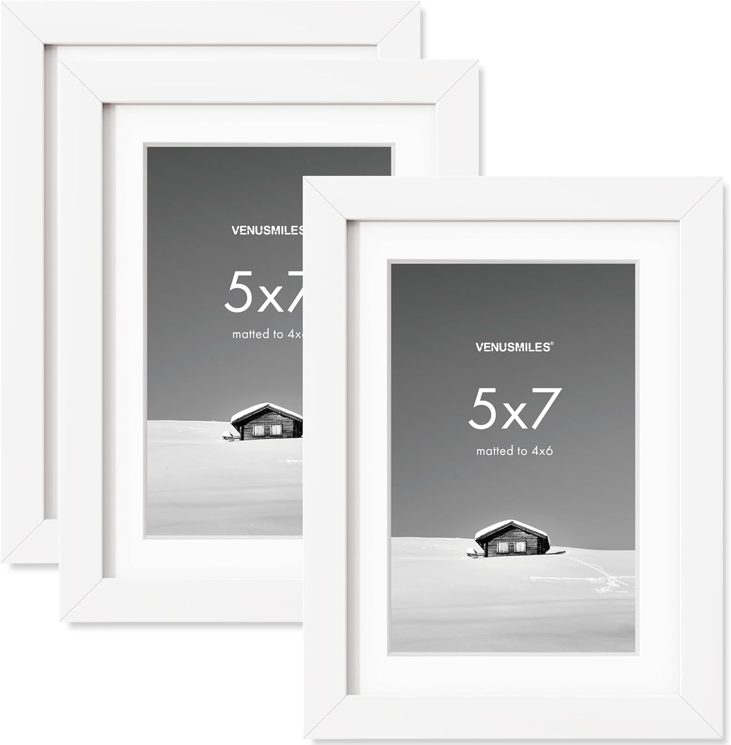 - Display Precious Memories - Showcase your cherished moments with our 5x7 plastic frame. It's lightweight yet sturdy with a superior quality finish. The white mat opening (measuring 3.5x5.5) is perfect for a 4x6 picture with the mat, or an 5x7 picture without it.