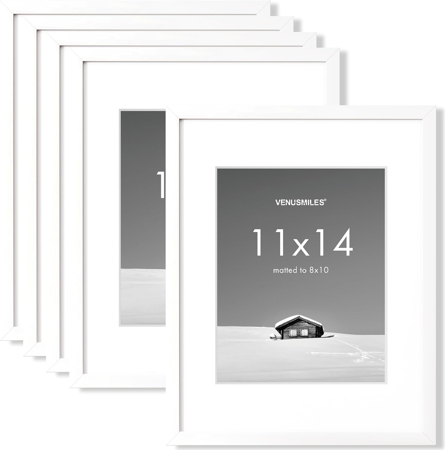 11x14 inch Picture Frame, 11x14 Photo Frames with 8x10 Removable Mat - High Definition Plexiglass - Vertical and Horizontal Display - Wall Hanging Frame - White, 5 Pack