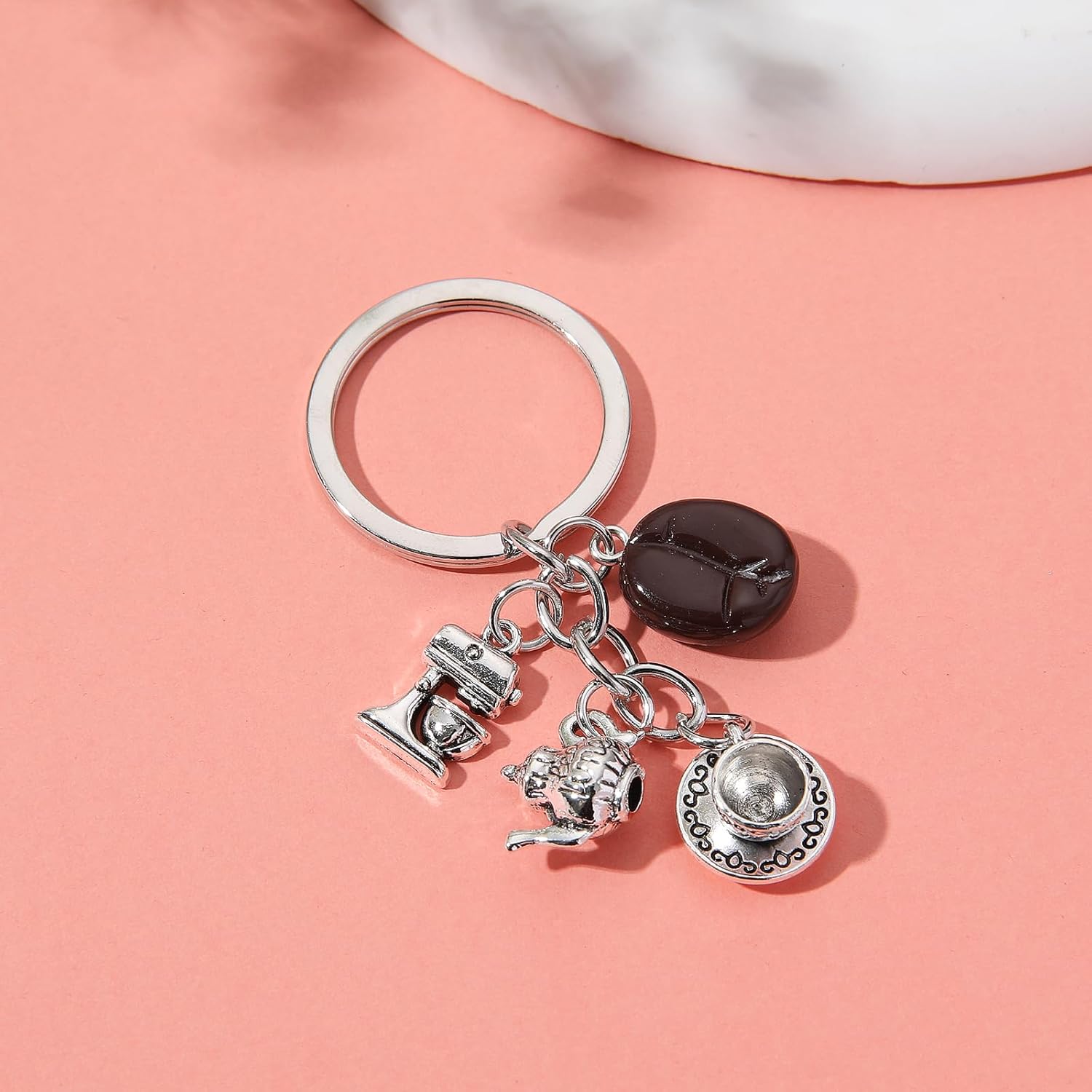 PHAETON 20PCS Coffee Bean Keychain - Coffee Lovers Gift - Silver, Modern, Unisex-Adults